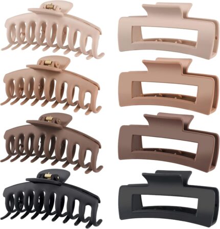 LuSeren Hair Clips for Women 4.3 Inch Large Hair Claw Clips for Women Thin Thick Curly Hair, Big Matte Banana Clips,Strong Hold jaw clips,Neutral Colors
