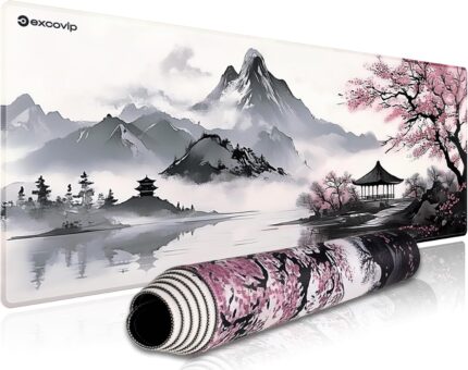 excovip Japanese Gaming Mouse Pad 800x300mm Pink Desk Gaming Mouse Pad Large Non-Slip Rubber Base Big Keyboard Mat with Stitched Edges for Gaming Office 0456