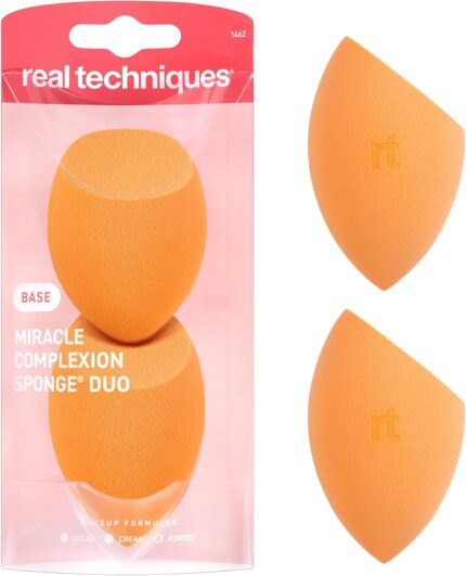Real Techniques Miracle Complexion Sponge, 0.9375 ounce (Pack of 2), Latex-Free, Polyurethane Foam, Multi-Purpose, Round Bottom Makeup Sponges, Ideal for Blending