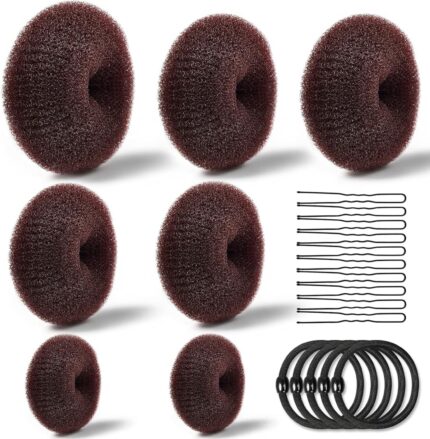 Lonimia Teenitor Hair Bun Makers, Hair Styling Accessories Kit with 5 Bands& 20 Bobby Pins & 7 Buns for Chignon Hair Styles (2 Small 2 Medium 2 Large 1 Extra-large), Brown