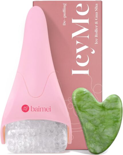 BAIMEI Ice Roller and Gua Sha Facial Tools, Ice Roller for face Reduces Puffiness Migraine Pain Relief-Pink