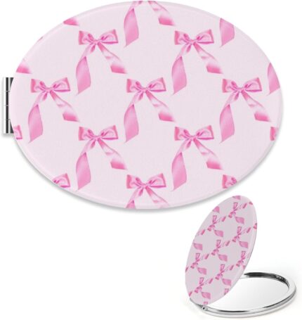 Cute Ribbon Small Mirror, 1X/2X Oval Travel Mirror Folding, Pu Leather Portable Mini Handbag Essentials Small Mirrors, Mini Travel Essentials Mirrors, Gift for Teenage Girls, Gadgets for Women