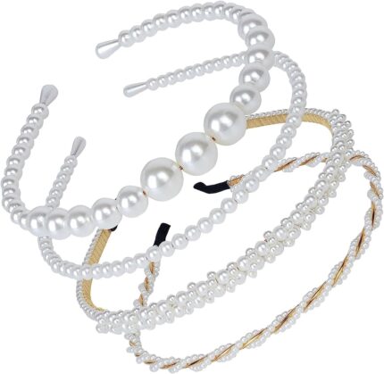 Shining Diva Fashion 4 Pcs Headbands Stylish Pearl Hairbands Hair Accessories Hair Bands for Women Girls (14967hb)