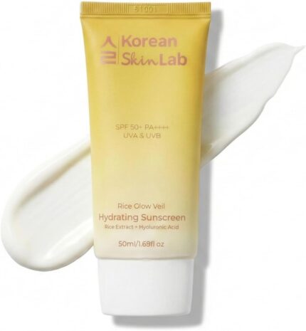 Rice Glow Veil Hydrating Sunscreen SPF 50+ PA++++ (50ml). No White Cast Daily Sun Block with Rice Extract & Hyaluronic Acid. Reef-Safe, Non-Sticky, Alcohol-Free. K-Beauty