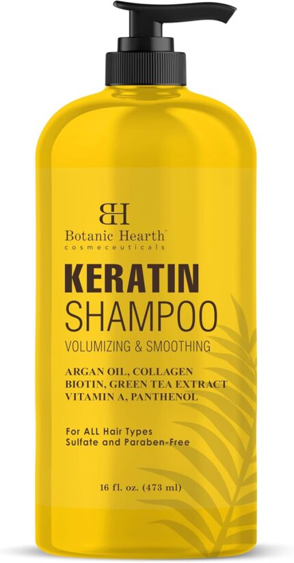 Botanic Hearth Keratin Shampoo | With Argan Oil, Collagen & Biotin | Best For Dry Damaged, Fizzy & Color Treated Hair | Hair Thickening & Sulfate Free | 16 Fl Oz (Pack Of 1)