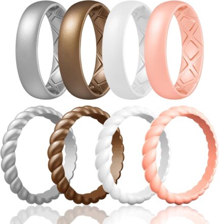 Egnaro Silicone Wedding Ring for Women,Thin and Stackble Braided Rubber Wedding Bands,No-Toxic,Skin Safe