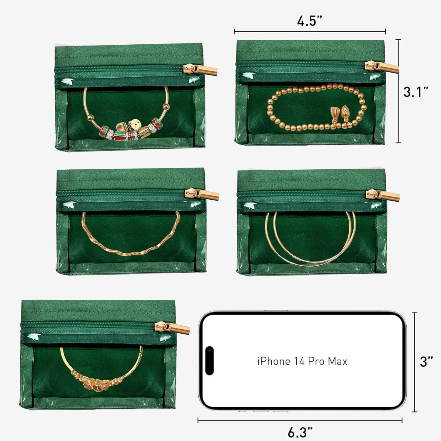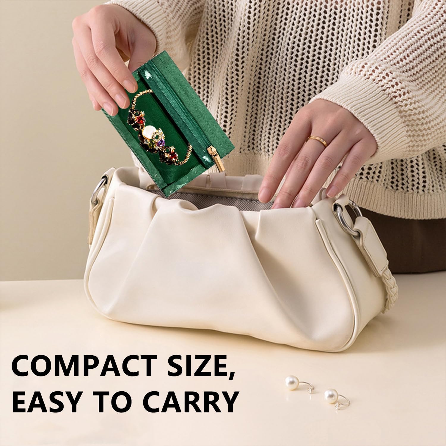 6/12 Pcs Travel Jewelry Organizer Pouches – Velvet Jewelry Bags with Clear Zipper Pockets, Anti-Tarnish Jewelry Storage for Necklaces, Rings, Earrings – Perfect for Women’s Travel Gifts (6, Green)