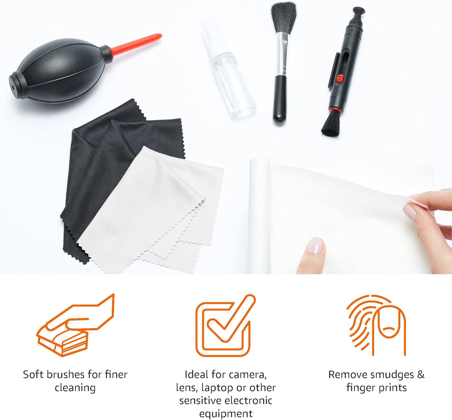 Cleaning kit with everything needed for safe and thorough cleaning of DSLR cameras and sensitive electronics