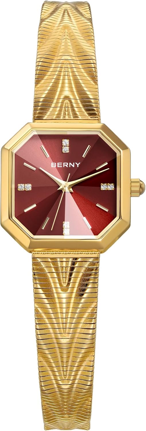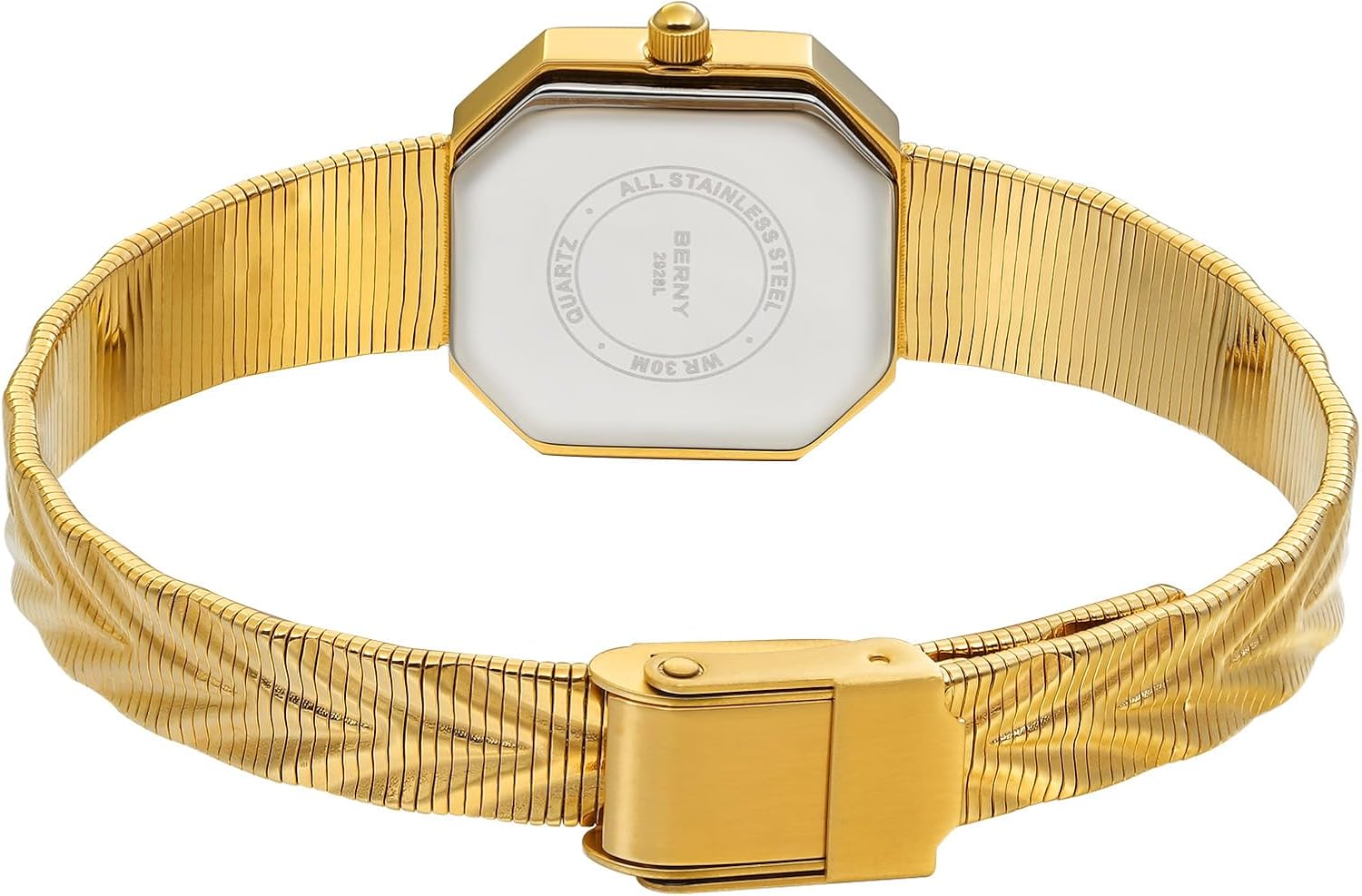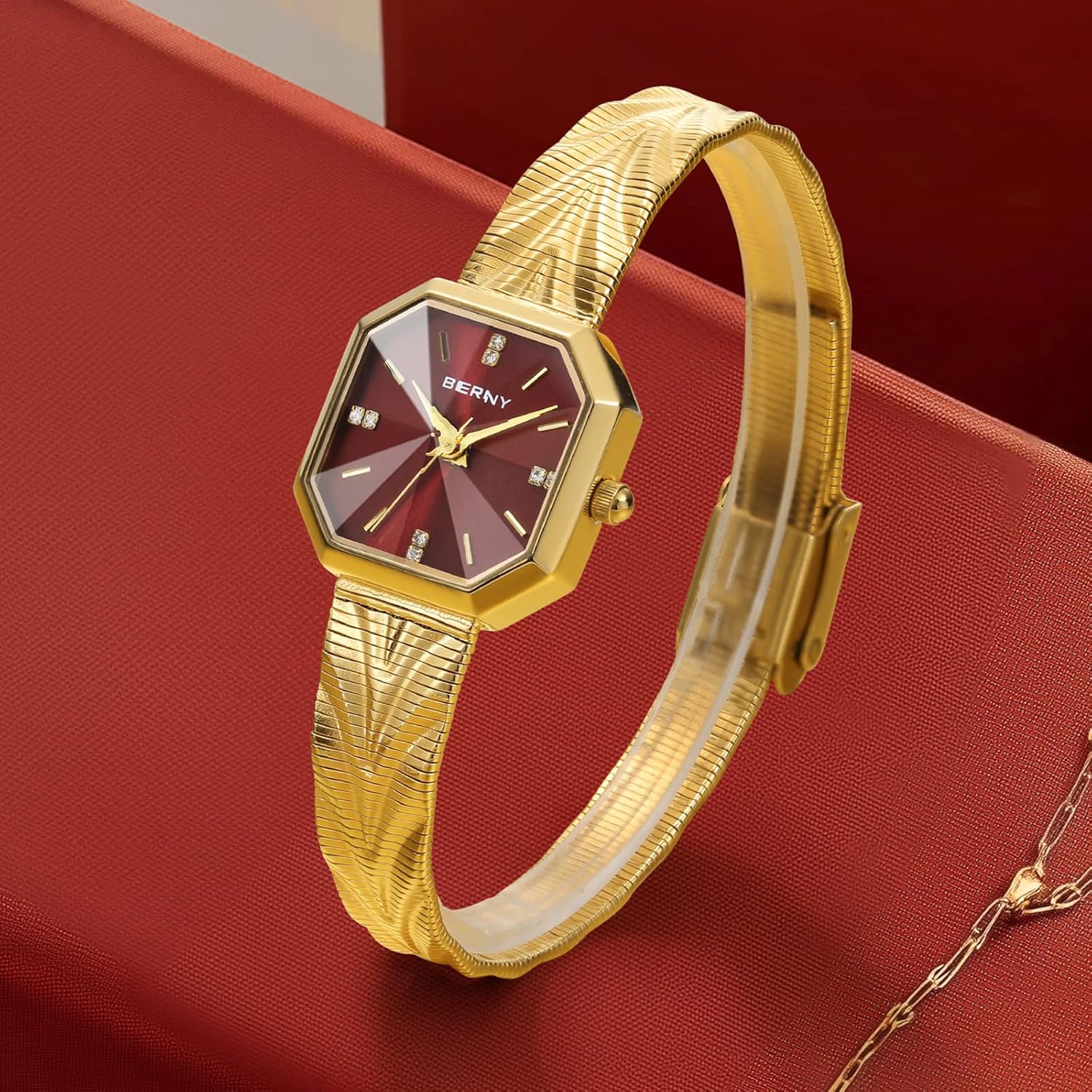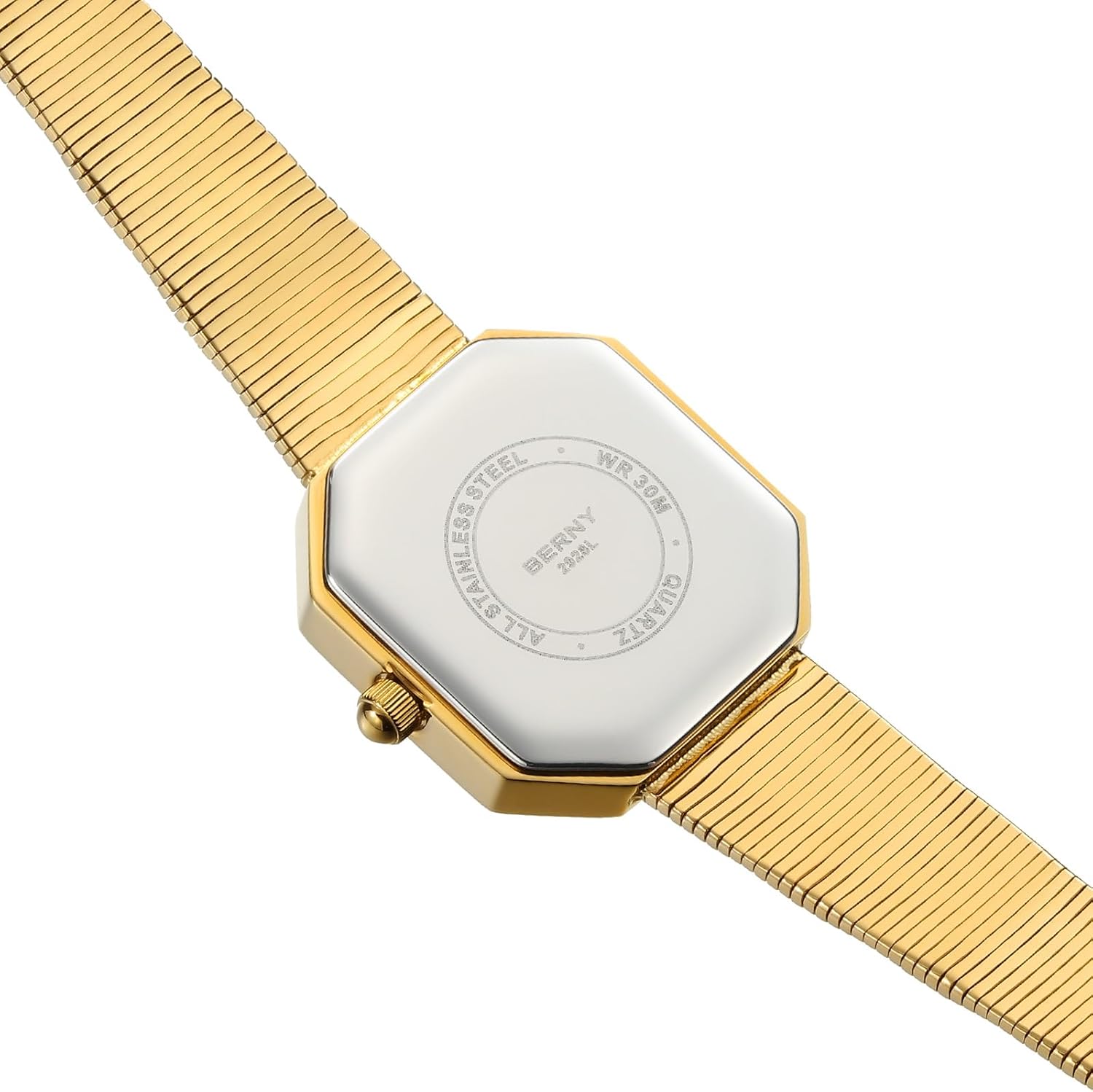 BERNY Gold Watch for Women Quartz Watch Irregular Square Dial Fashion Timepiece Water-resistant Bracelet Watch