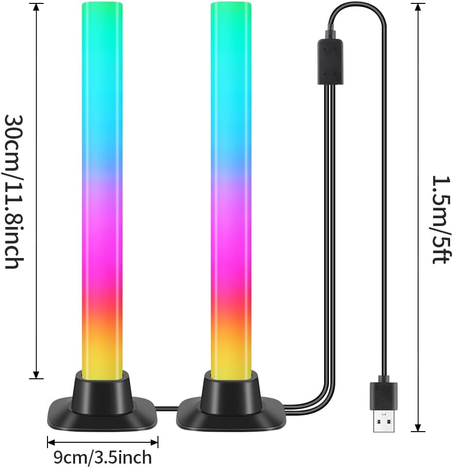 💡【𝟏𝟔 𝐌𝐢𝐥𝐥𝐢𝐨𝐧 𝐂𝐨𝐥𝐨𝐫𝐬,𝐃𝐢𝐦𝐦𝐚𝐛𝐥𝐞 𝐁𝐫𝐢𝐠𝐡𝐭𝐧𝐞𝐬𝐬】The size of the RGB light bar is L30x W3 x H3 CM, with 16 million colors, show amazing lighting effects, bring different decorative effects to your space. RGB light bar can adjust the brightness, you can light or dim according to different environments, and you can freely adjust the color, to create your own light color. The color of the RGB light bar will jump up and down, making the space more dreamy.