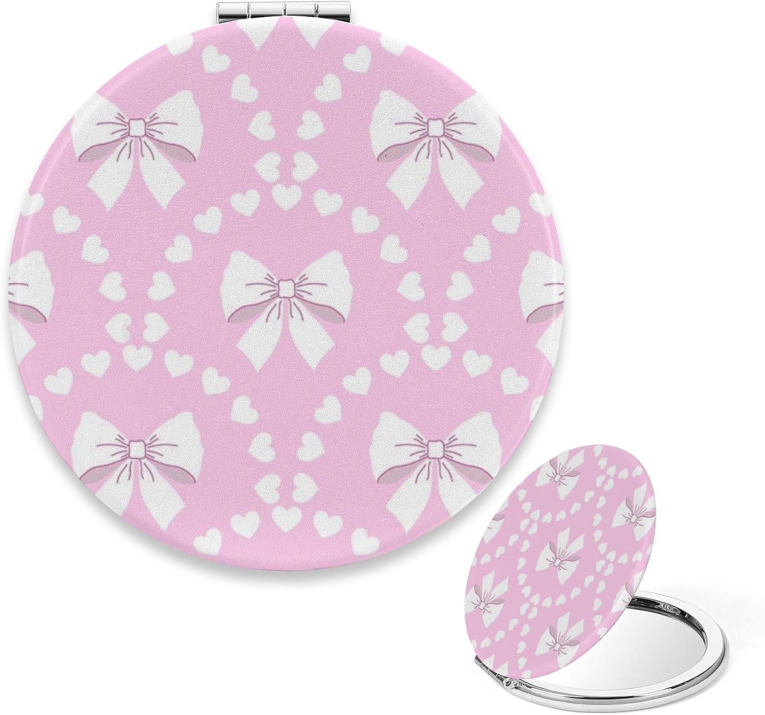 Cartoon Girly Small Mirror, 1X/2X Round Handbag Mirror Compact, Holiday Essentials Pu Leather Portable Small Mirrors, Travel Compact Mirrors, Gadgets for Women, Travel Gifts for Women