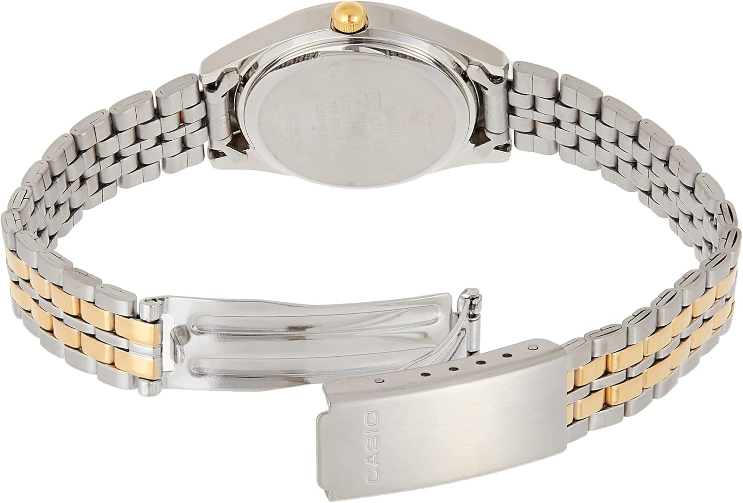 Get the sleek and classic Casio Stainless Steel Watch and accessorize your appearance. Its surface features beautiful tints and detailing that make it a chic choice. The superior stainless steel crafting of the Casio watch gives it a classic appeal as well as outstanding durability. The mineral dial window is crack and scratch-resistant. With the 3-bar water-resistant construction, the watch can withstand water splashes and rain. Moreover, the advanced engineering and quartz movement of this watch make it a reliable choice for accurate timekeeping.