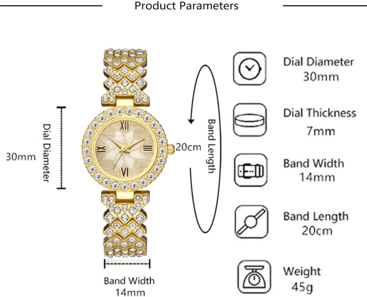 This watch features a round dial set with rhinestones, which looks sparkling under the light, stylish and elegant, and is extremely comfortable to wear with any outfit and daily occasions.