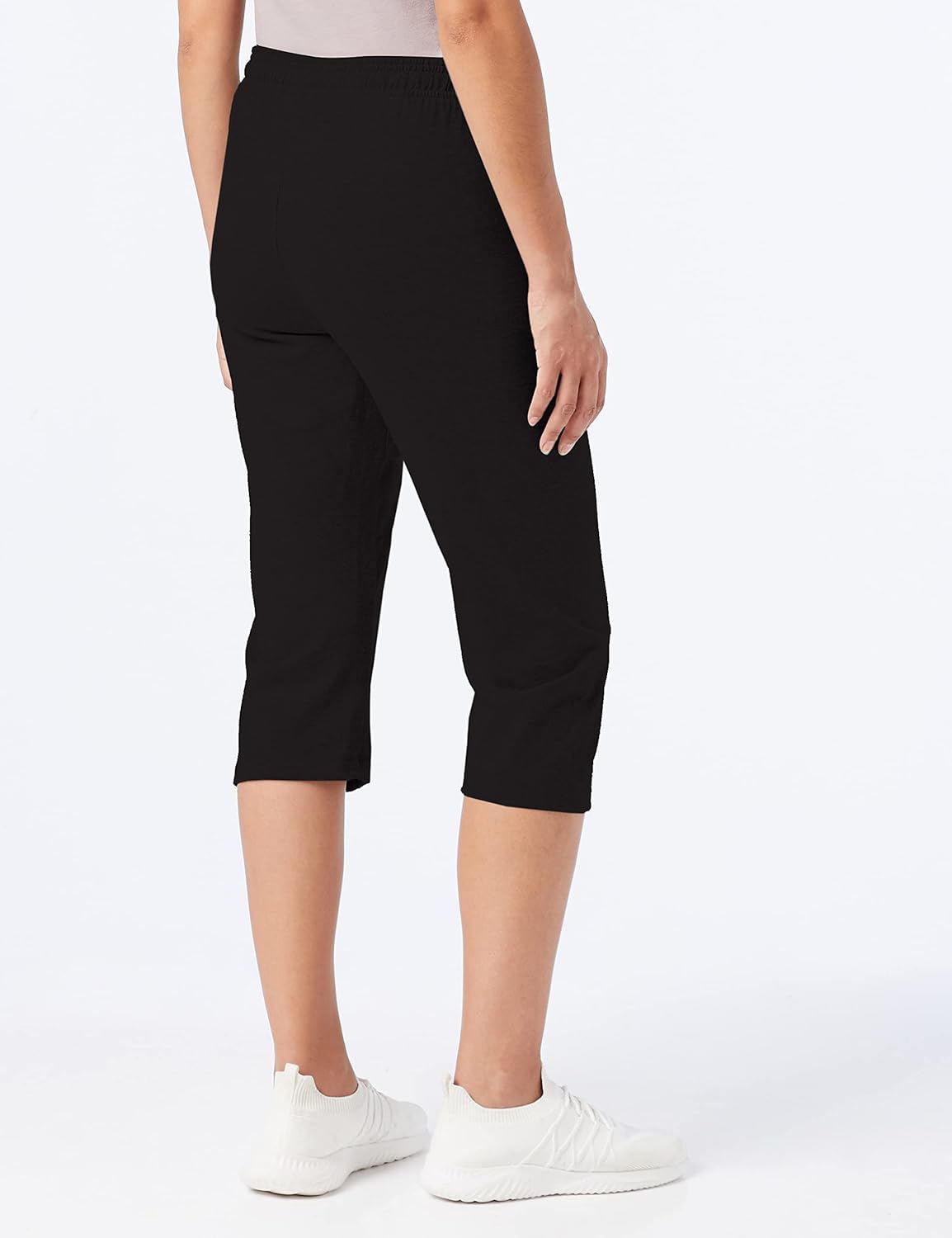 Your go-to year-round cotton jersey capris, Tag free elastic waist with adjustable outer drawcord for custom fit, Cool and comfortable cotton jersey fabric, 18-inch inseam, C logo at left hem..