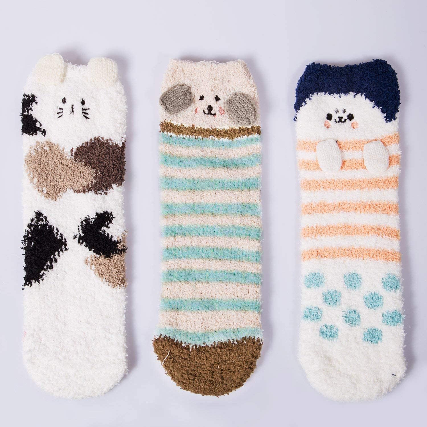 ELECDON 3 Pairs Womens Fuzzy Socks Winter Warm Fluffy Soft Slipper Home Sleeping Cute Animal Socks, womens cozy fluffy socks fuzzy socks plush socks, Winter Fluffy Socks Cozy Fuzzy Socks Athletic