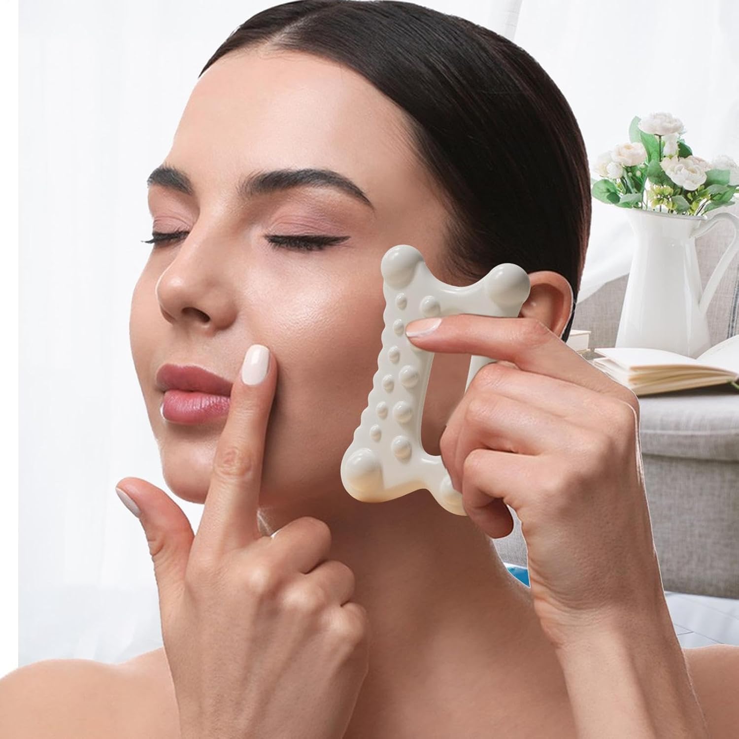 Improved Facial Relaxation Tool: Designed for multi-zone functionality, this face scraper tool employs a precision contour structure to provide targeted skin massaging that focuses on muscle-specific zones, aiding relaxation in spa-like settings at home