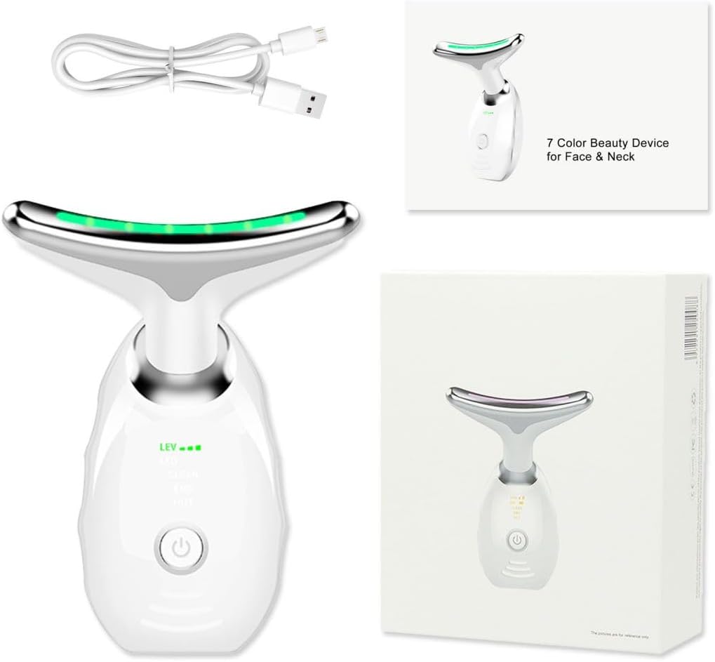 Facial Beauty Device, Face Massager Tool for Skin Care, Based on Triple Action LED, Thermal, and Vibration Technologies, Red and Blue LED Light, 7 Color Led Face and Neck Massager for Home Use