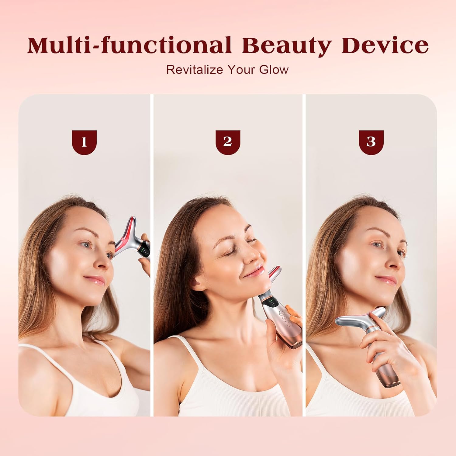 Facial Massager, 7 Colors Red Light Therapy for Face and Neck, Face Lift Device with 113°F Heating Vibration for Multi Skin Care