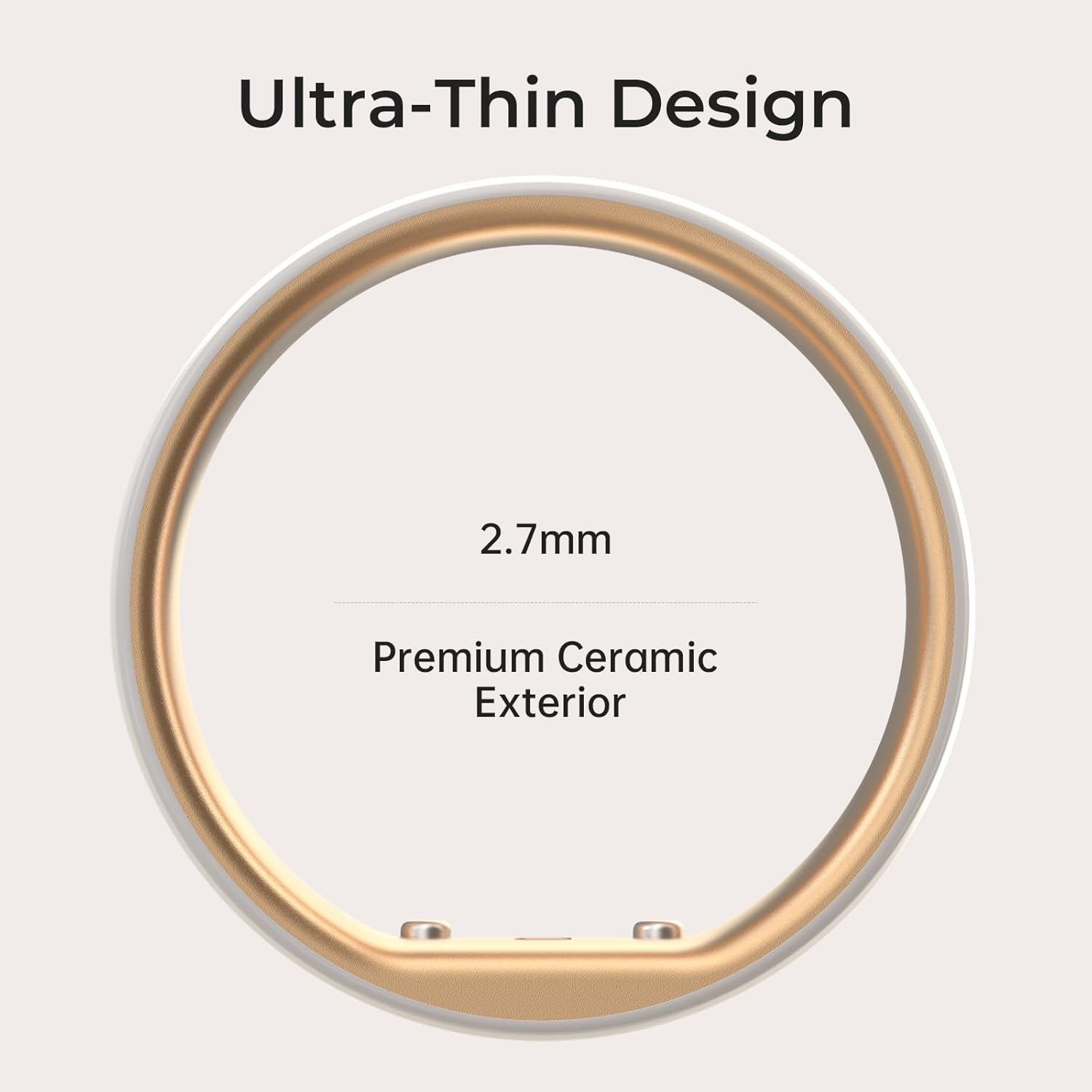 COMFORT MEETS ELEGANCE: Just 2.7mm. Premium ceramic exterior with aluminum core ensures durability while weighing only 3.3g. Scratch-resistant, water-resistant to 1.5m, and designed for 24/7 wear. Size First with femometer Sizing Kit.