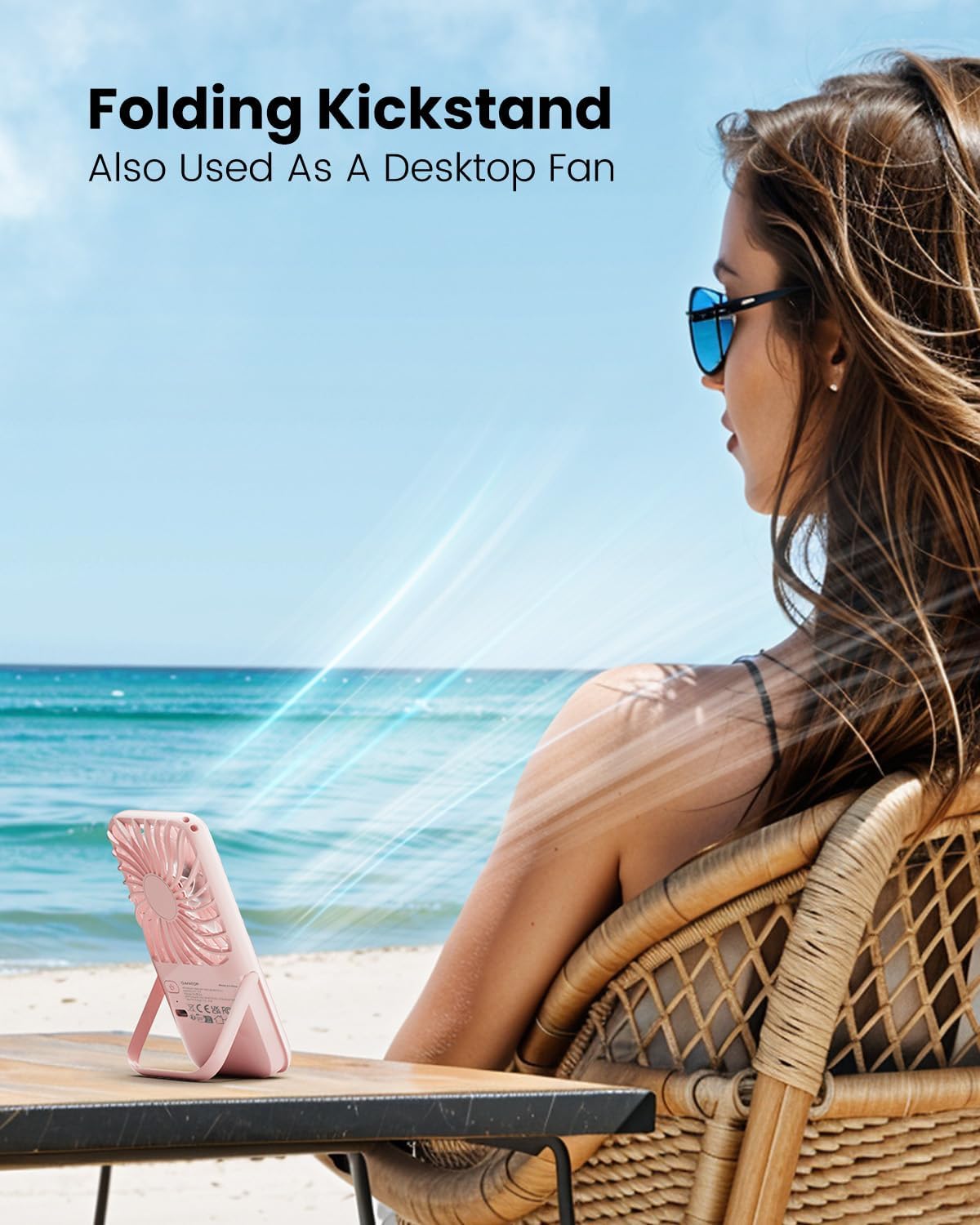 Cute Design and Summer Gifts: Sleek design and rise color are a nice touch; Delivering excellence in small size, versatile fan speeds, fast charging, and impressive battery life; The portable fan will be great summer gifts for women, girls or hot flashes