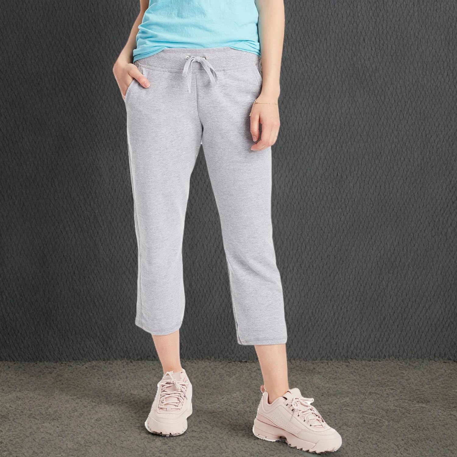 Hanes women’s French terry pocket capri is cotton rich for extra softness. The French terry fabric is smooth outside and brushed inside for extra comfort. Side pockets and adjustable draw cord waist