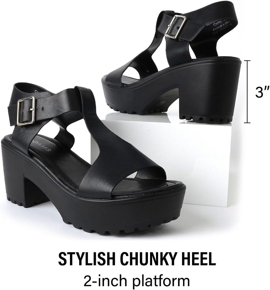 J. Adams Corby Platform Sandals Heeled Sandals for Women – T-Strap Chunky Mid Heel Sandal Wedges for Women – Women Footwear Platform Shoes – Summer Shoes for