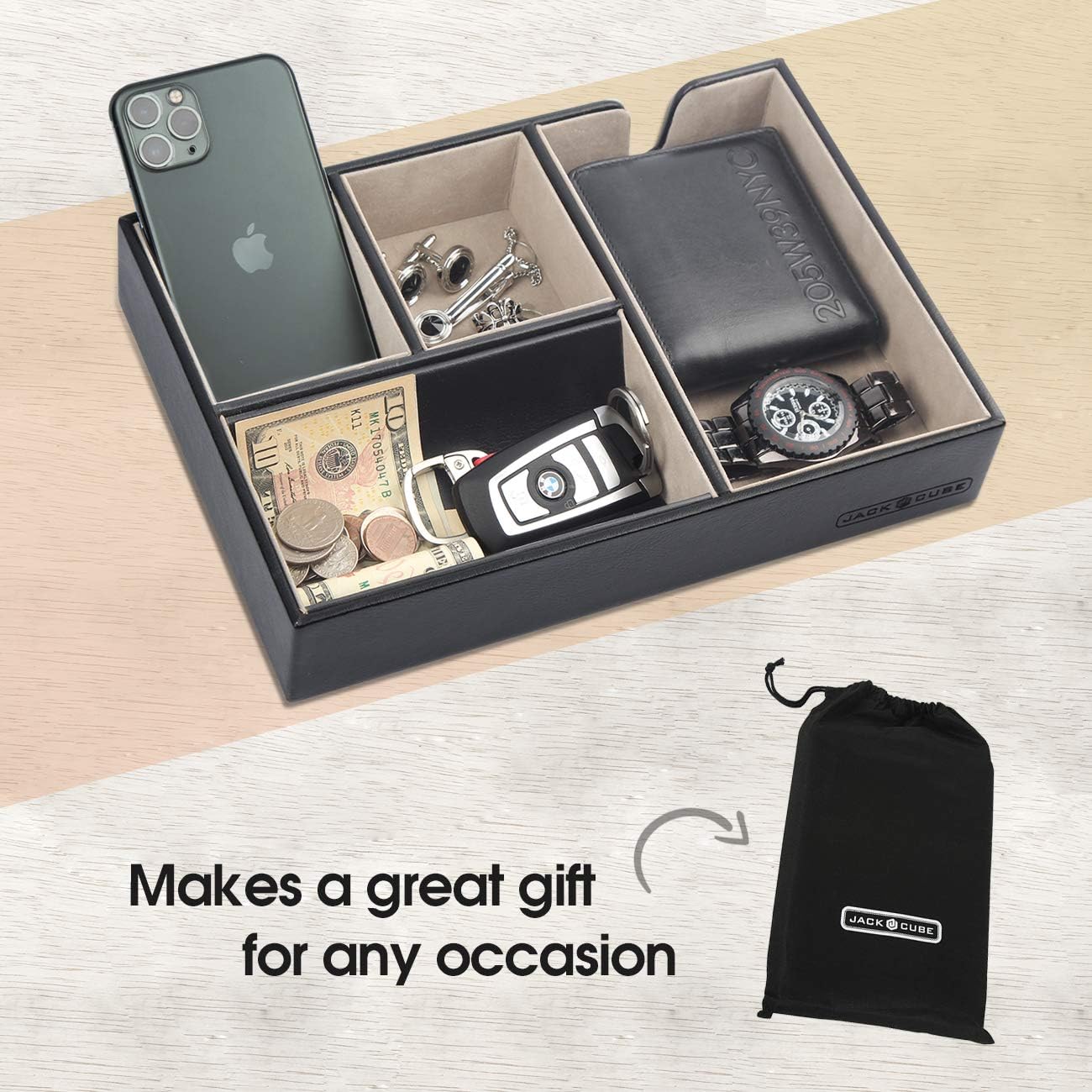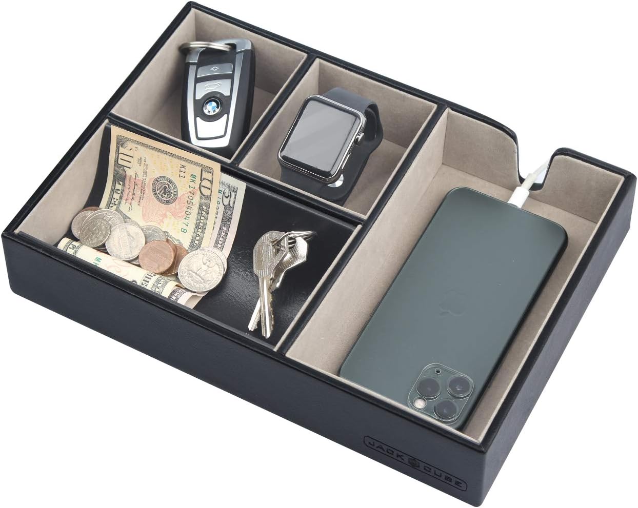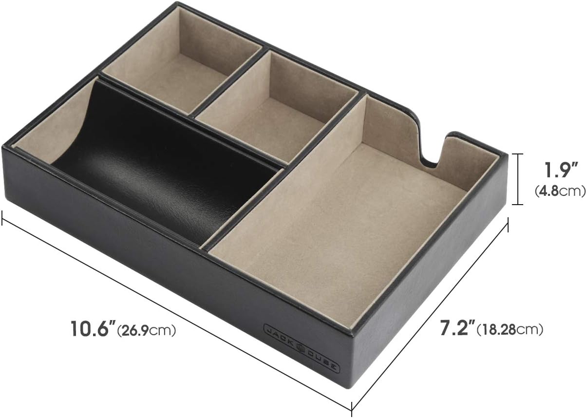 J JACKCUBE DESIGN – Valet Tray Multi Leather, Desk or Dresser Organizer, Catch-all for Keys, Phone, Wallet, Coin, Jewelry and Nightstand(Black, 10.6 x 7.2 x 1.9 inches) – :MK233A