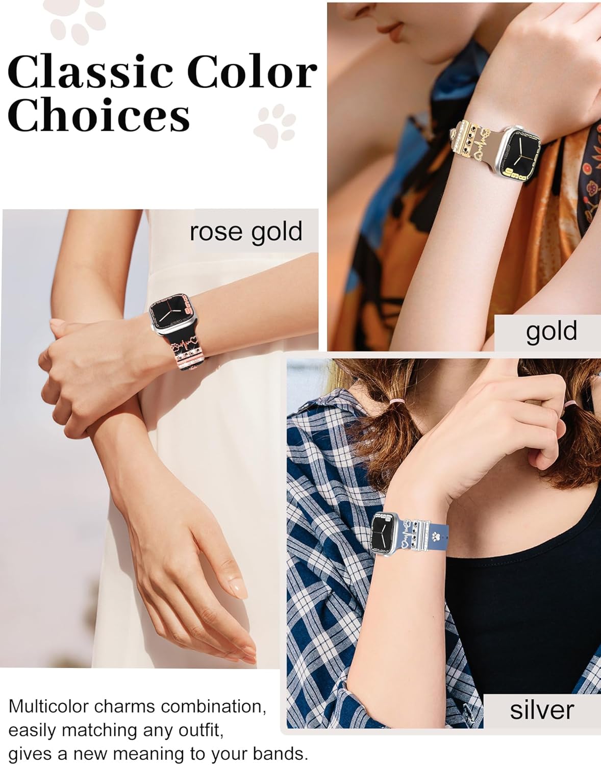 JR.DM Watch Band Charms with Decorative Bling Rings Loops, Compatible with Apple Watch 40mm 41mm 38mm 42mm 44mm 45mm Smart Watch Strap Accessories for iWatch Series 9 8 7 SE 6 5 4 3 2 1 (No Band)