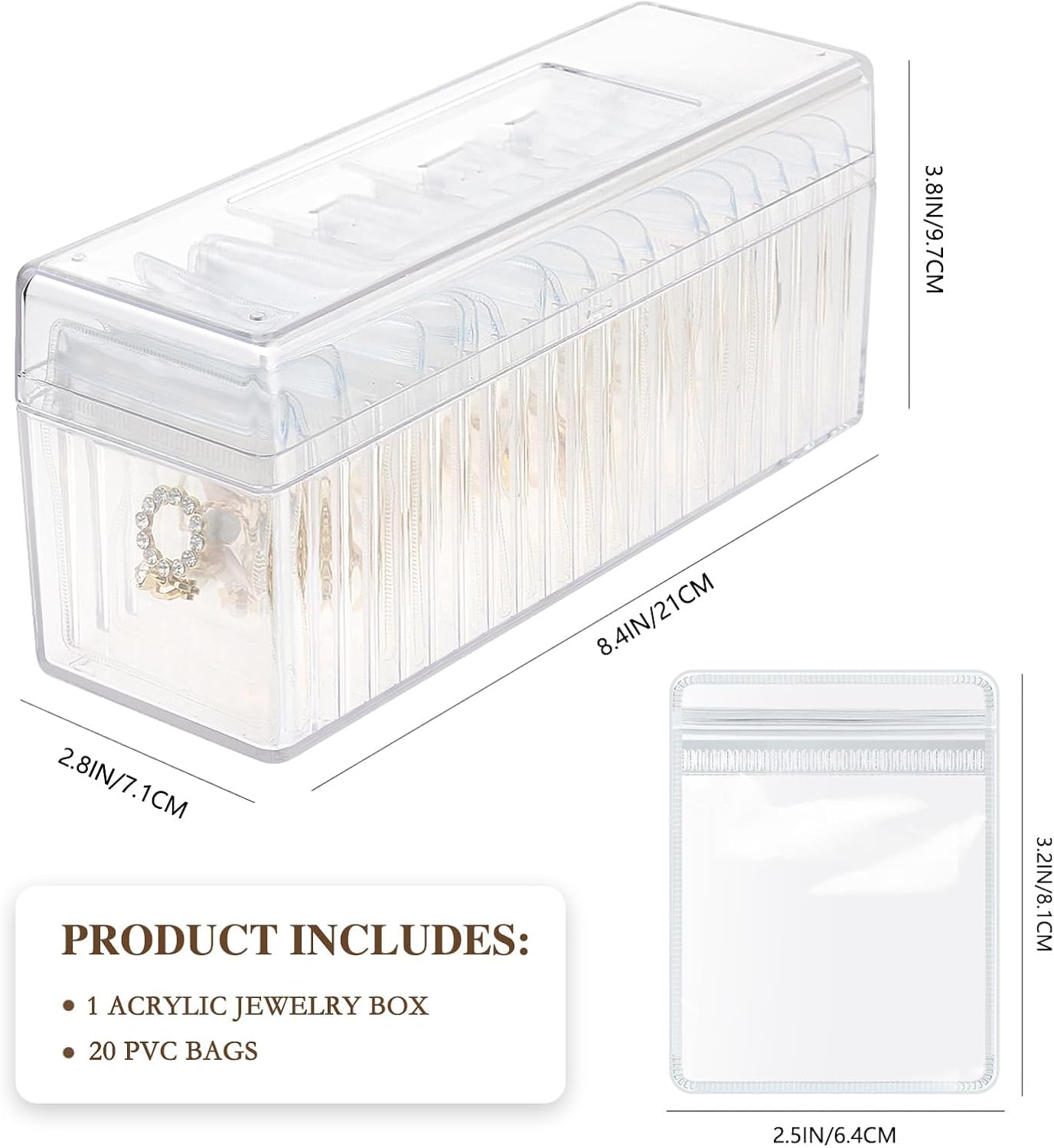 KASTWAVE Acrylic Jewelry Box Organizer, Clear Jewelry Holder with 20 Portable Anti-Tarnish Bags, Travel Jewelry Case for Earrings, Rings, Necklaces, Ideal for Women and Girls, Durable and Stylish