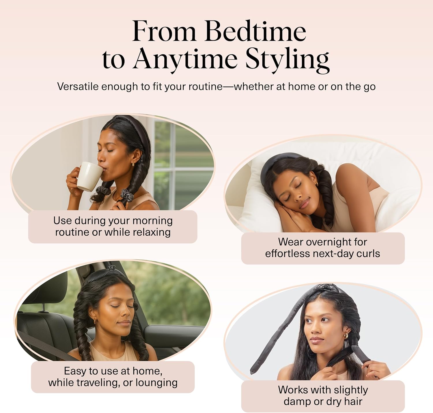Create Damage free Curls The Shower, Waterproof and reusable. Reducing Hair Frizz, helps keep your hair style at night. Workouts or to keep you hair back. Effortless, Elevated and Easy-to-Use Everyday Essentials
