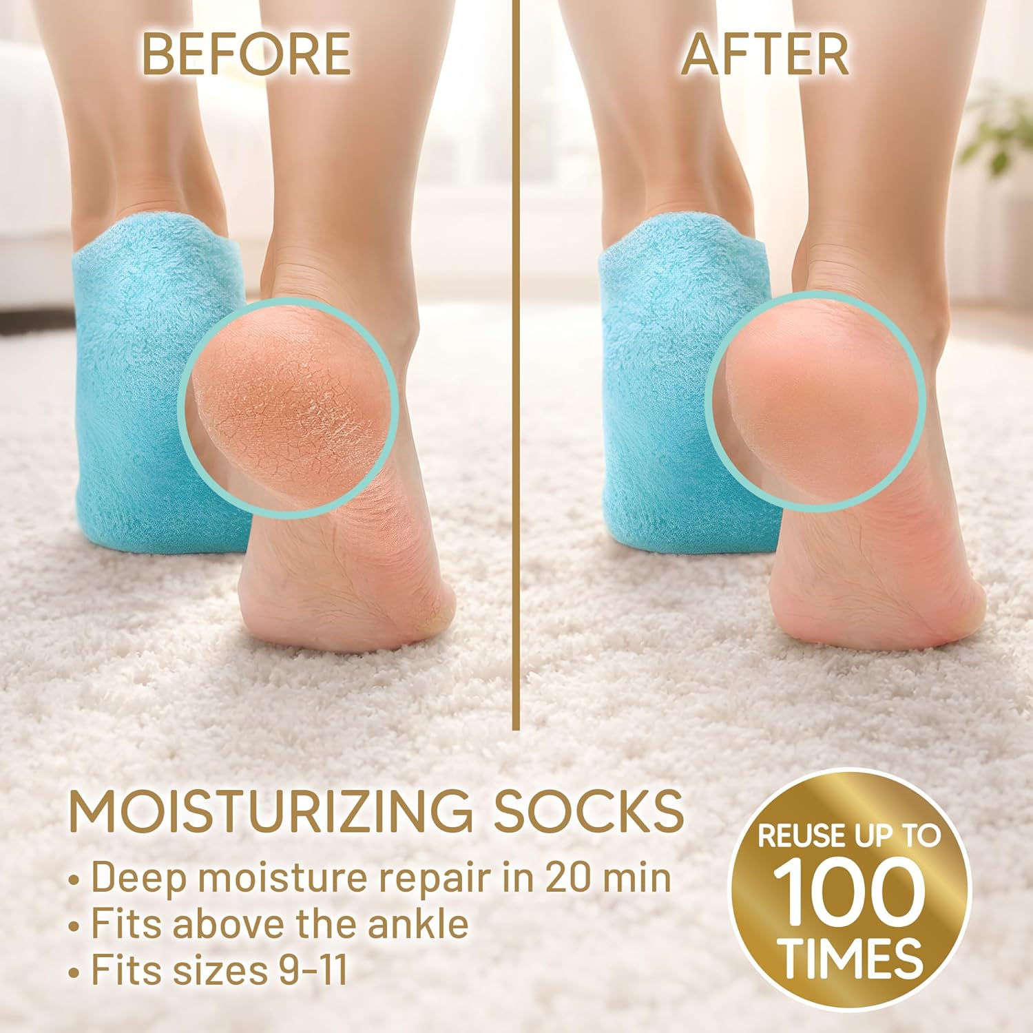 Cracked heel treatment – Experience significant healing with LOVE, LORI moisturizing socks, enriched with a therapeutic gel that deeply treats and repairs cracked heels for smoother, softer feet.