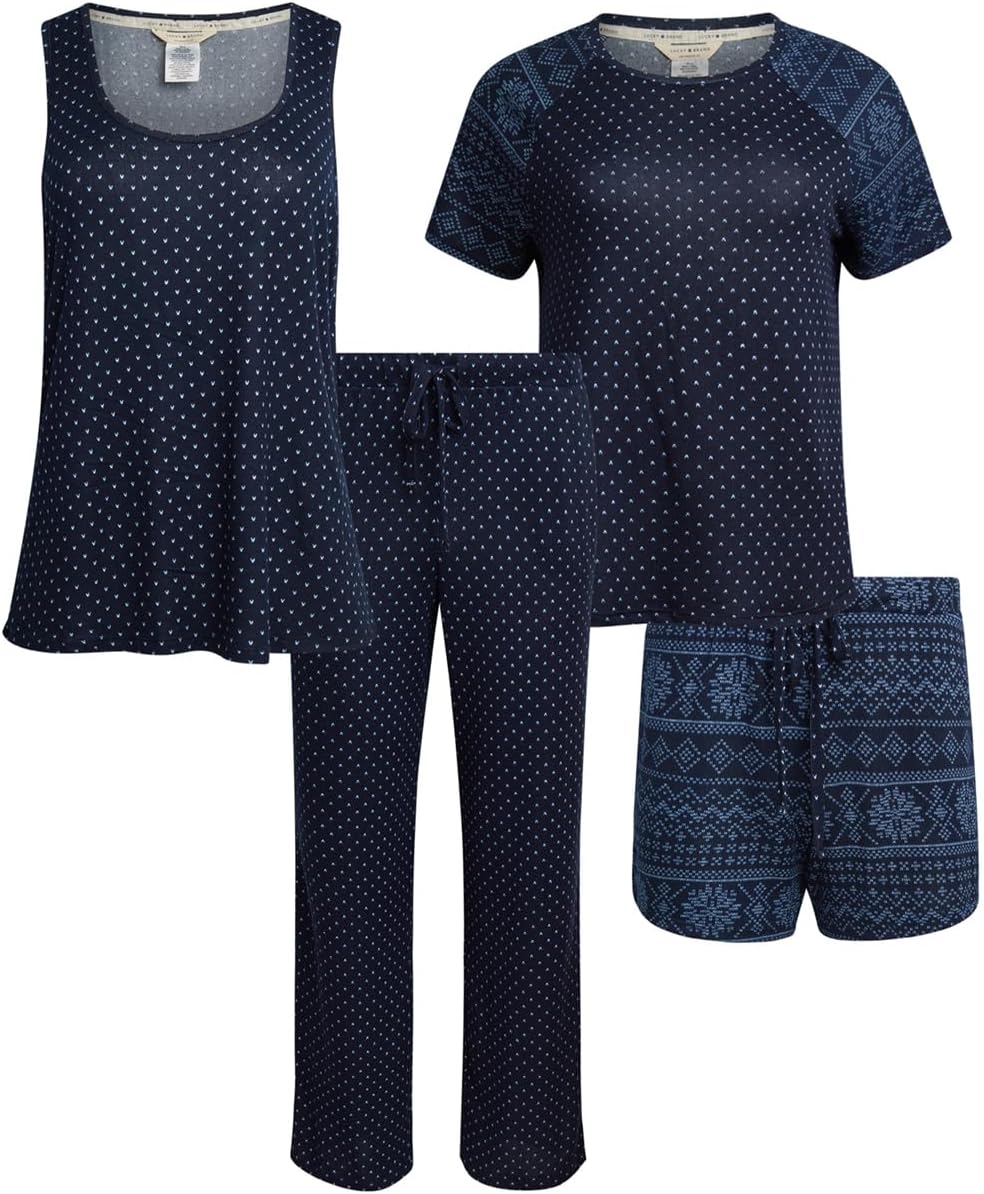 Lucky Brand Women’s Pajama Set – 4 Piece Sleep Shirt, Tank Top, Pajama Pants, Lounge Shorts (S-XL)