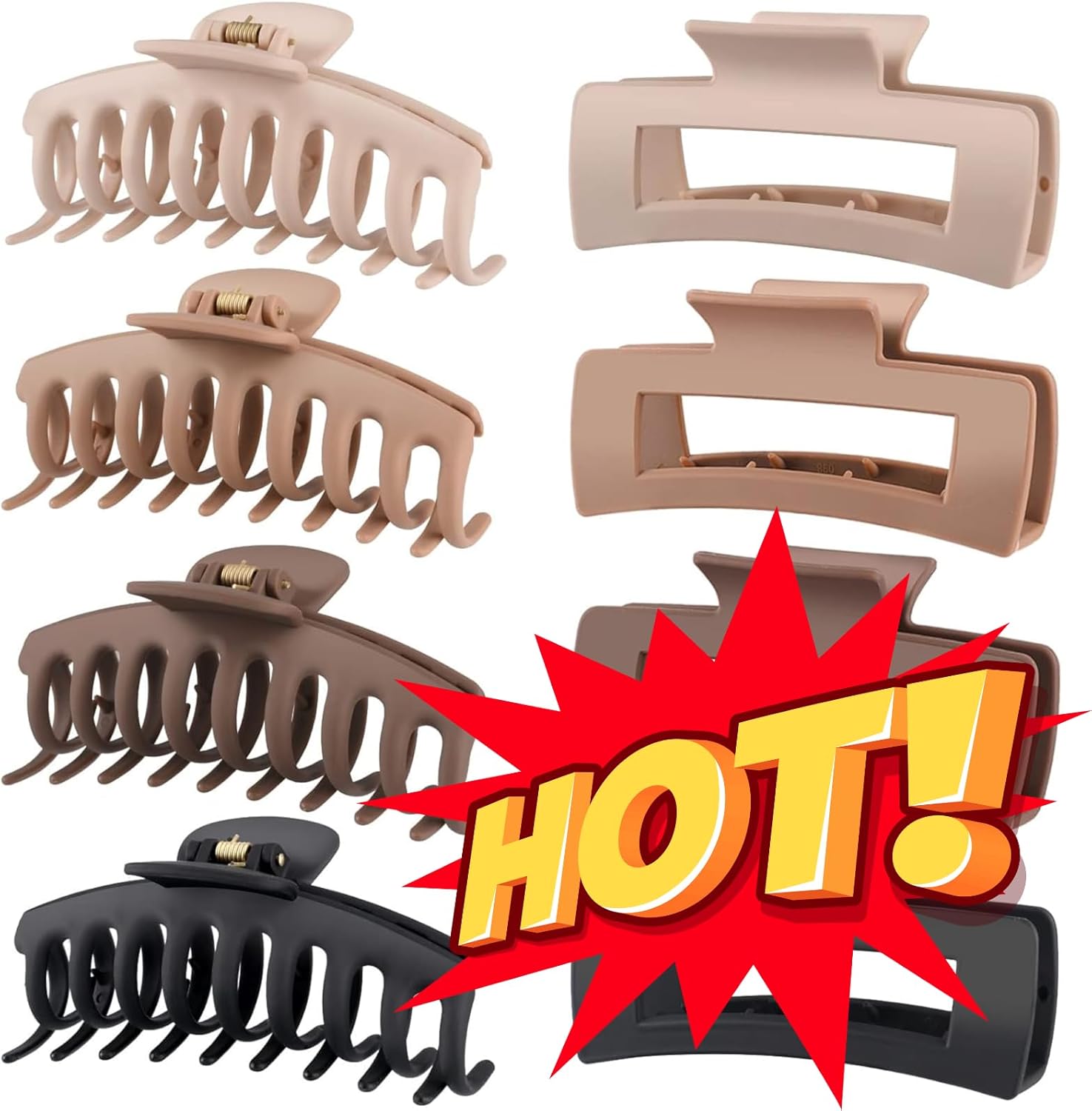LuSeren Hair Clips for Women 4.3 Inch Large Hair Claw Clips for Women Thin Thick Curly Hair, Big Matte Banana Clips,Strong Hold jaw clips,Neutral Colors