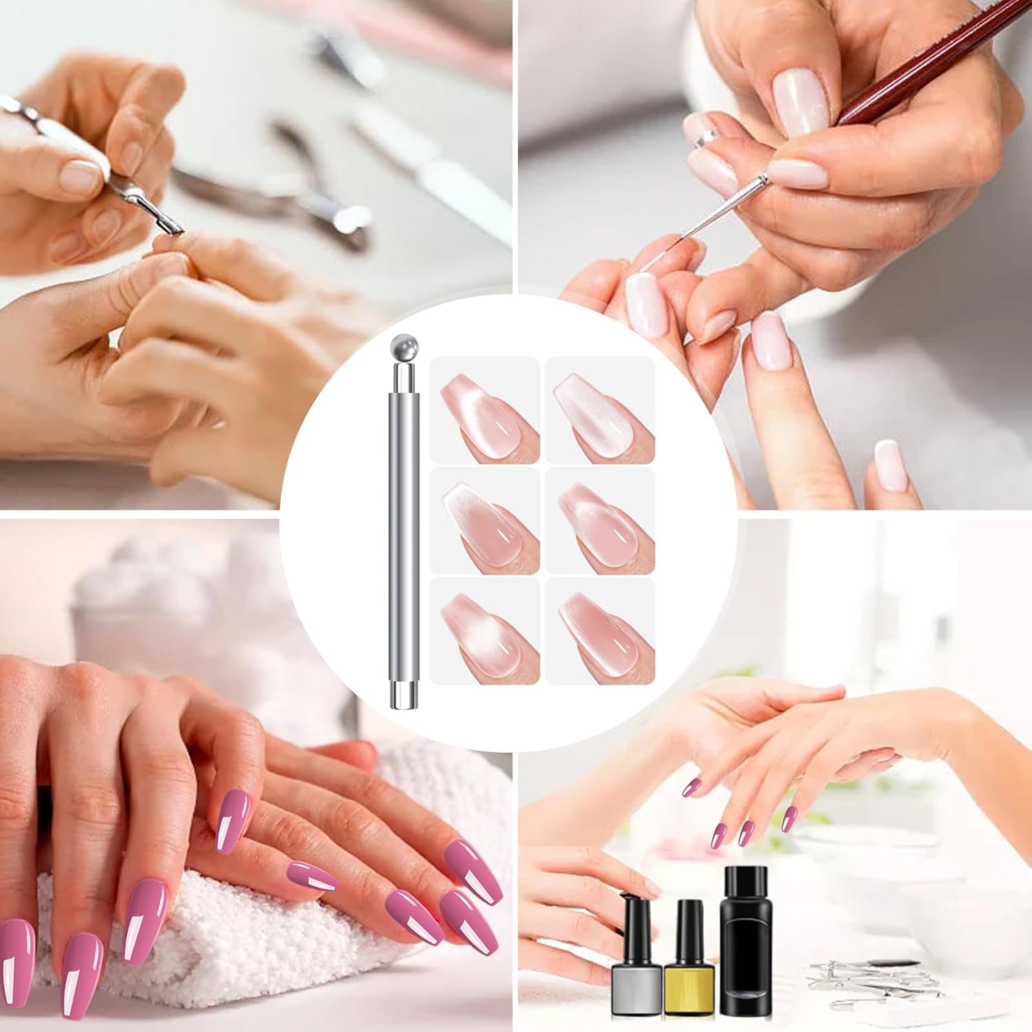 Nail Magnet Tool | Double-Tip Kitten Eye Magnet for Nails,Ergonomic Grip Multi-Functional Beauty Gadget for Fingernails Polish Women Adults Teens