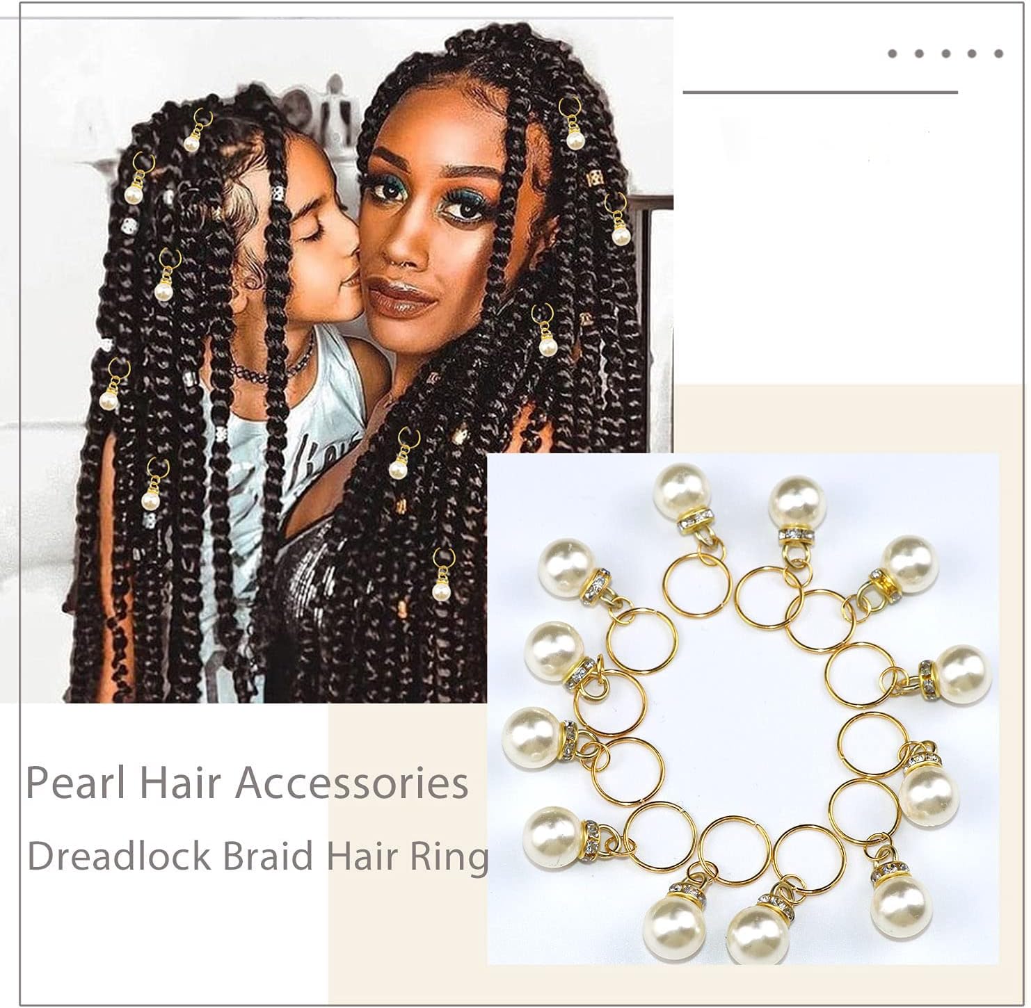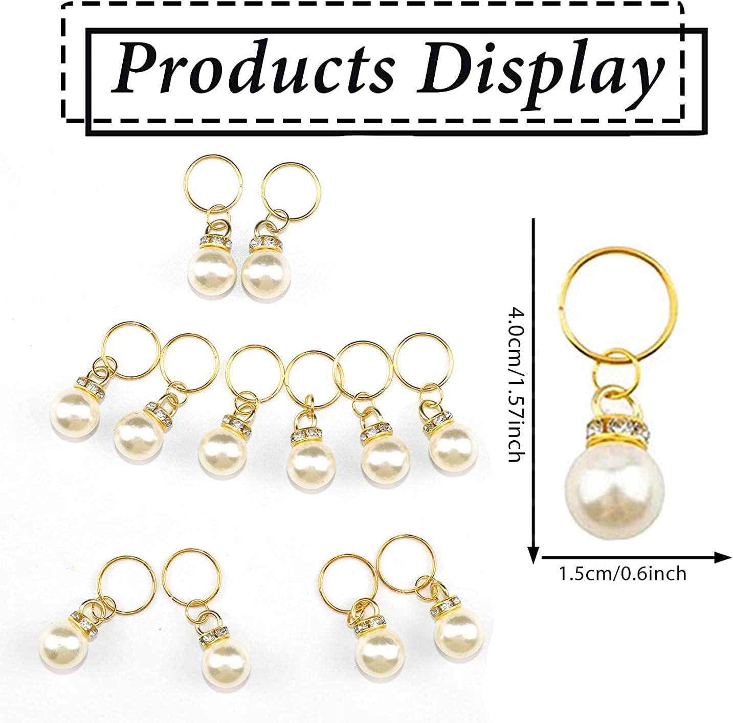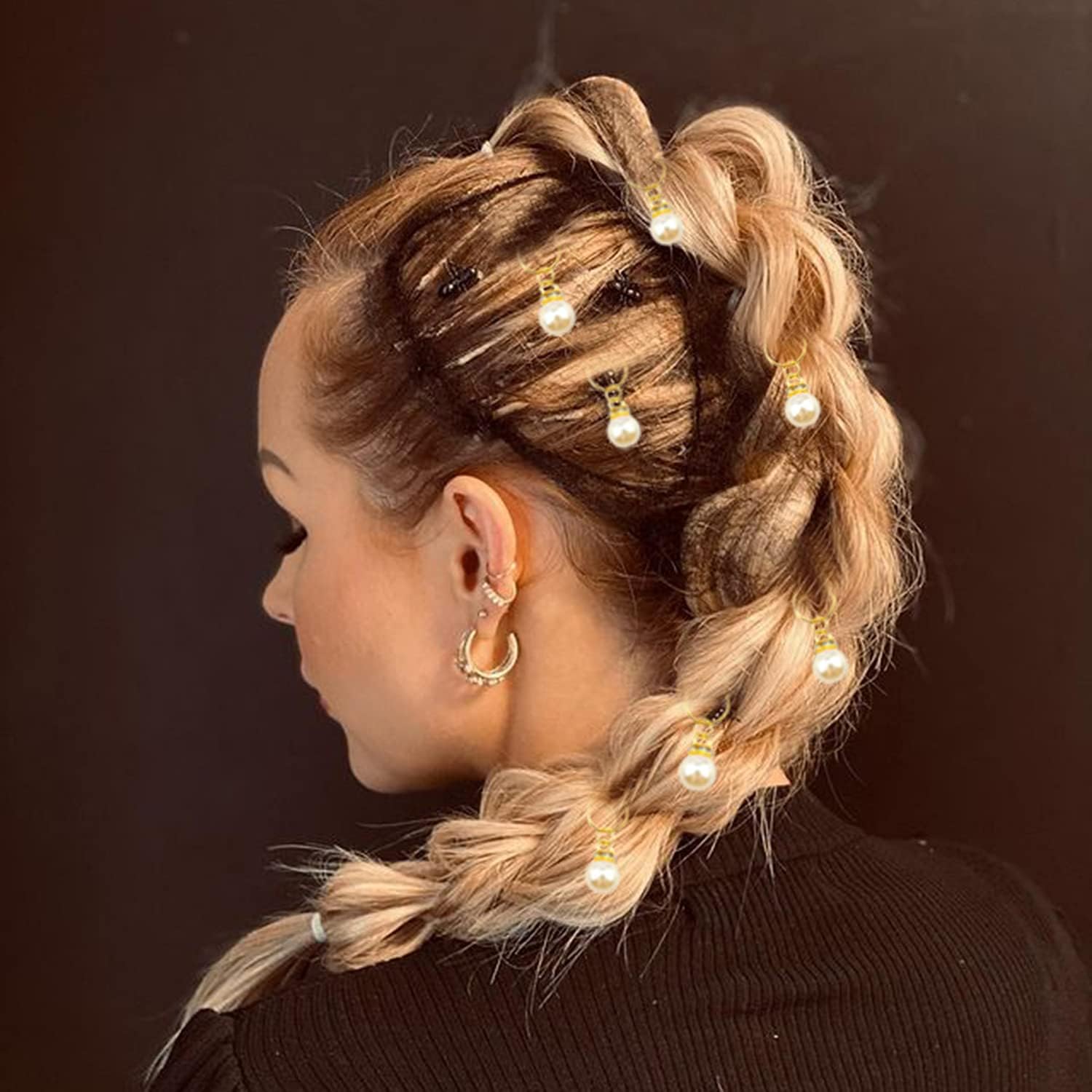 NALACAL Gold Pearl Braid Clips Dreadlock Accessories Wedding Hair Pins Crystal Rhinestone Pearls Hair Jewelry for Women Cuffs Charms Rings Shiny Hair Accessories (50PCS)