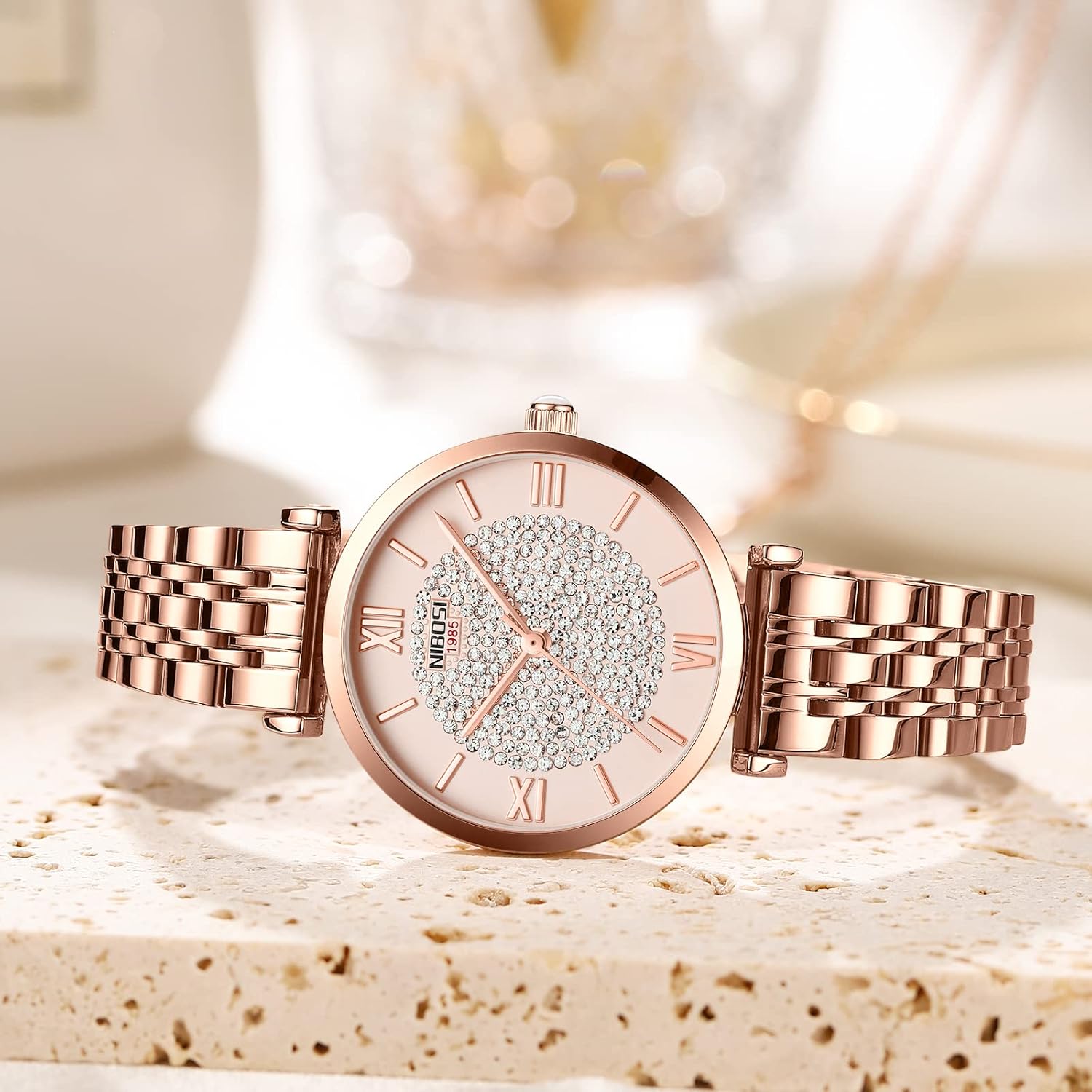 NIBOSI women’s watch has a 3ATM waterproof rating, which can withstand daily waterproof functions such as splashes, but is unsuitable for swimming.