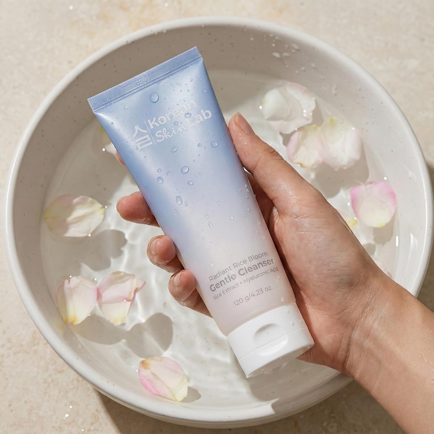 Radiant Rice Bloom Gentle Cleanser (120ml). Daily Korean Face Wash with Brightening Rice Water & Hyaluronic Acid. Hydrating Cream to Foam Formula for Glass Skin.