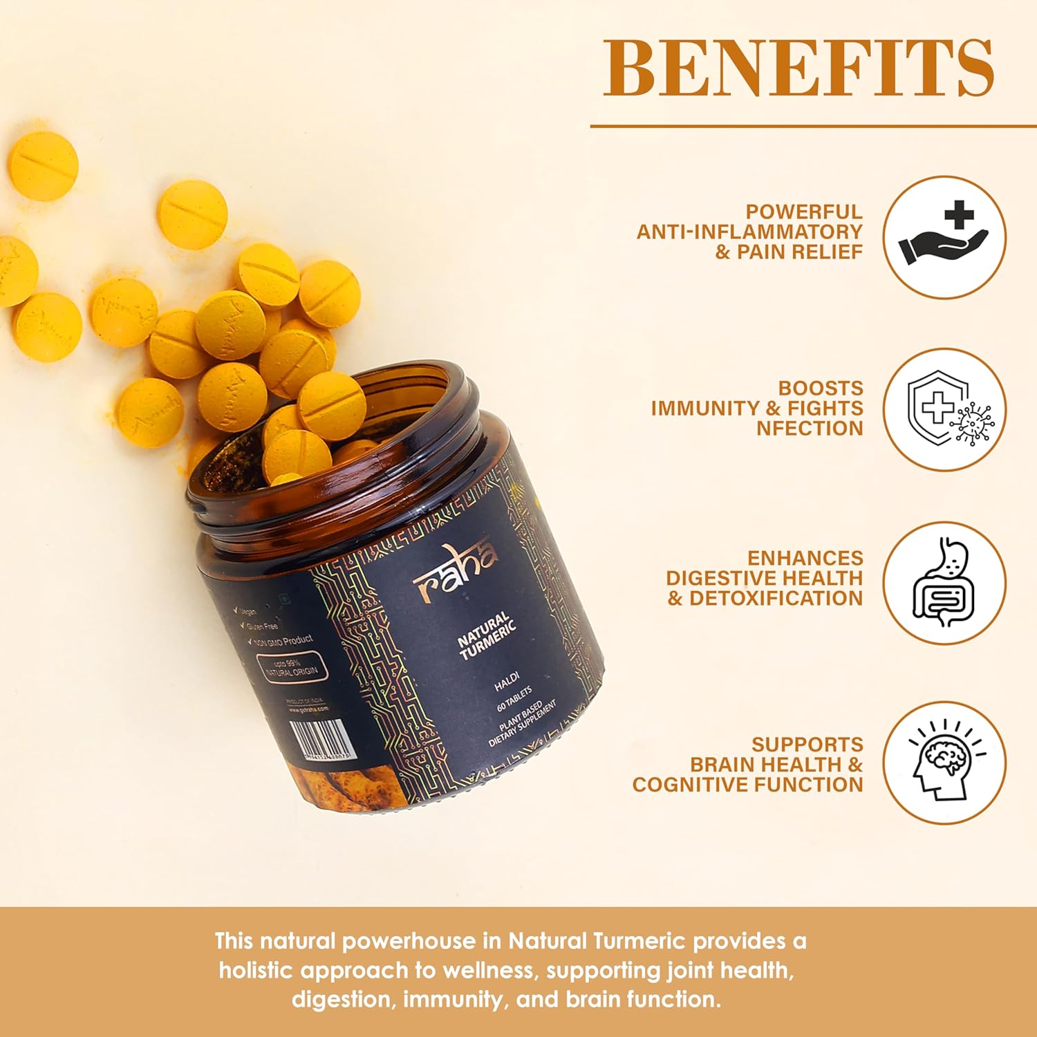 Raha- Natural Turmeric (Haldi) Plant based Dietary Supplement, Anti Inflammatory and Joint Health Supplement, Boosts Immune System-60 Tablets