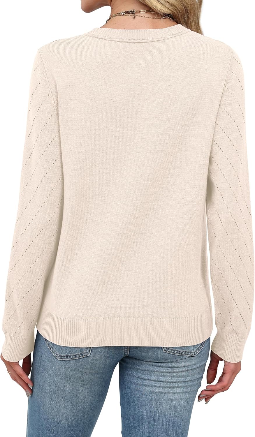 Sampeel Womens Sweaters Crew Neck Long Sleeve Tops Knit Soft Pullover Sweaters Cozy Dressy Casual Shirts Fashion Clothing