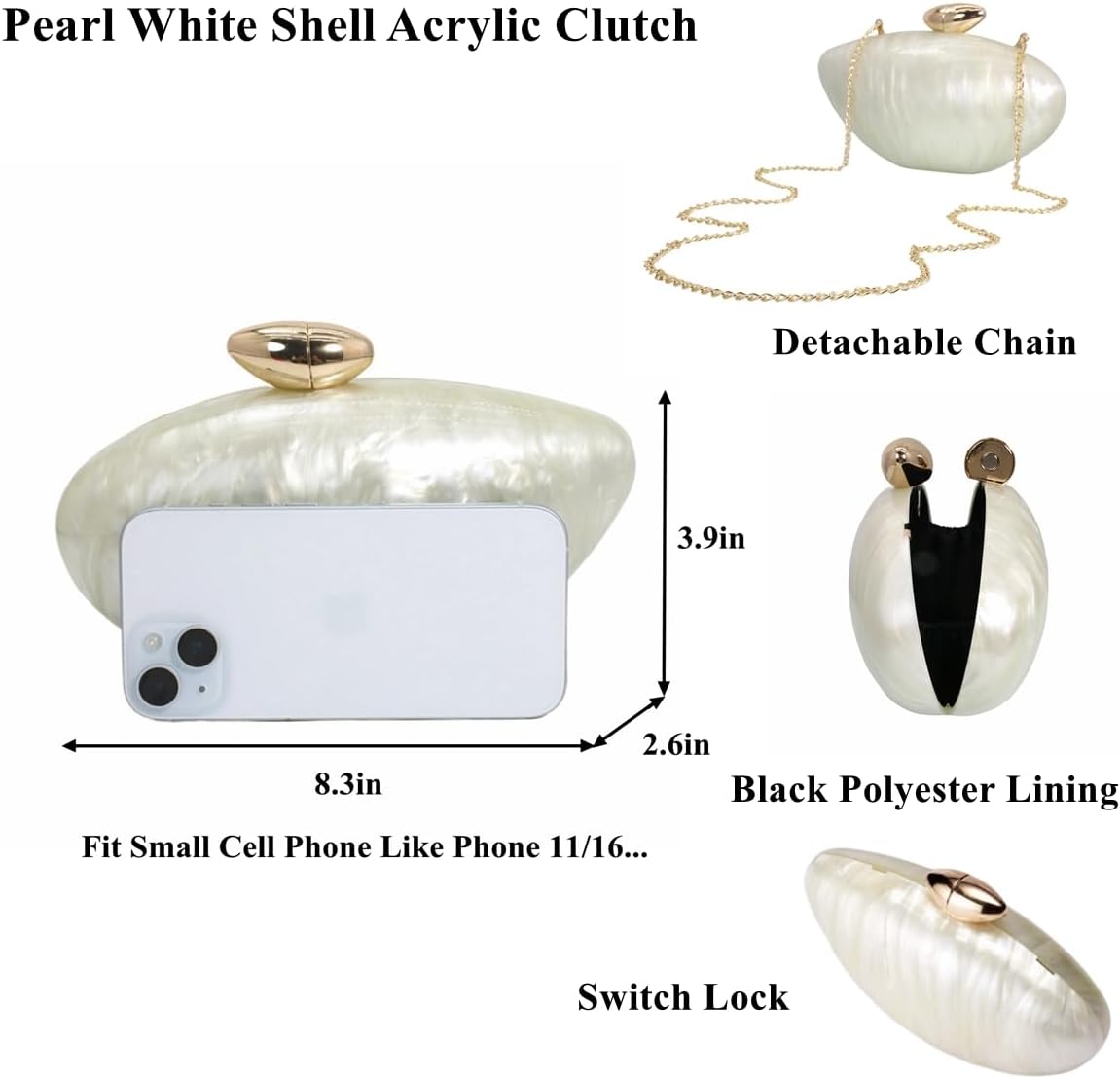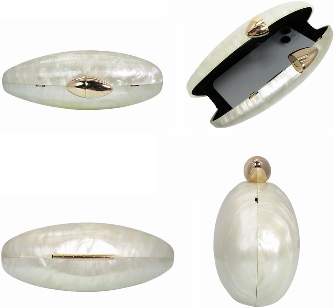 Shell Shape Acrylic Clutch Trendy Metallic Acrylic Evening Bag Shiny Egg Purses and Handbags for Women Wedding Party
