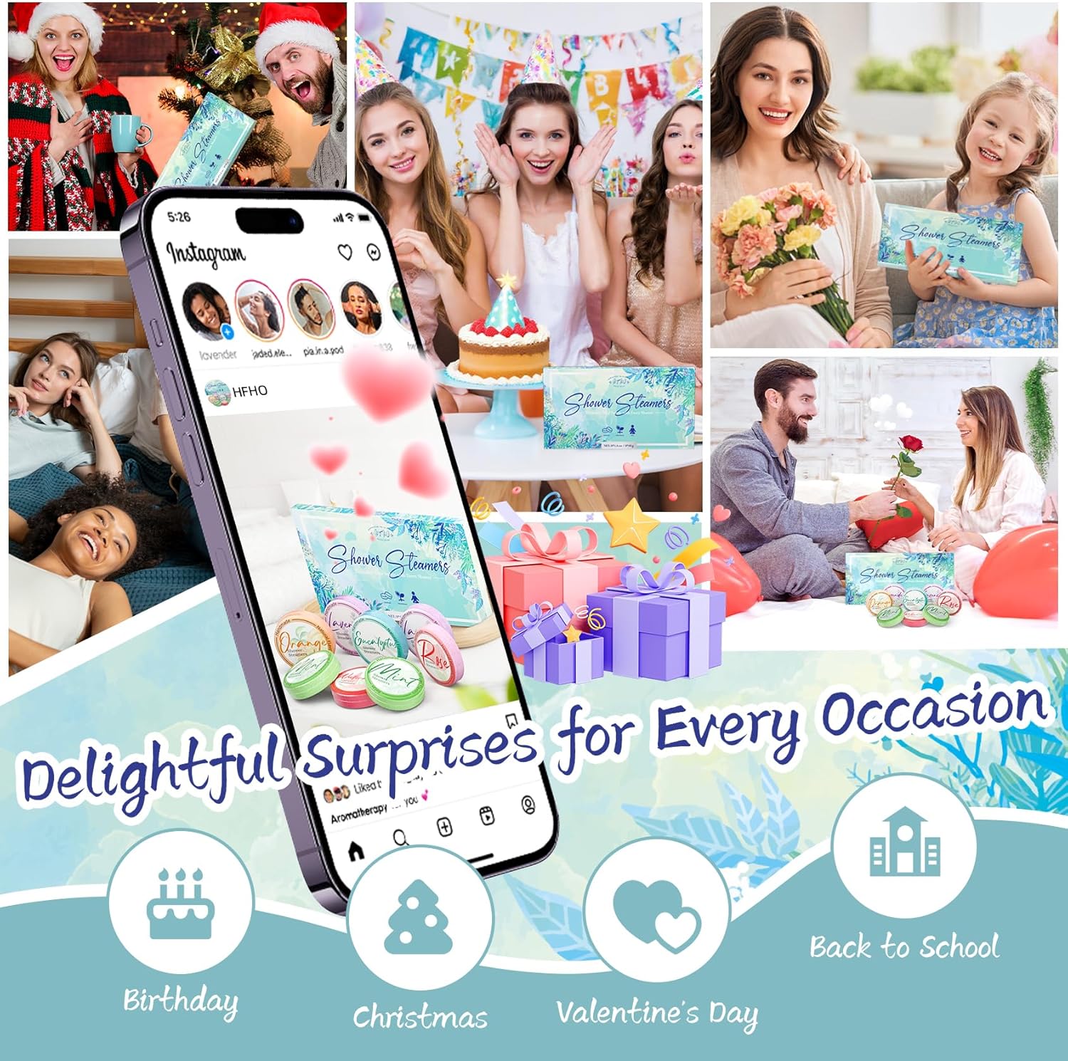Gifts for women, Transform your daily shower into a luxurious spa experience with HFHO Aromatherapy Shower Steamers.Choose the perfect scent based on your preferences and mood, or randomly try new ones for a delightful surprise each time. Shower steamers aromatherapy, Designed for exceptional self-care, these shower steamers are made with natural essential oils and fragrances, offering pleasantly strong scents. They help relieve stress, relax your body and mind, and enhance happiness during your shower. Simply place a shower steamer on the floor, let it get slightly wet, and enjoy the delightful aroma it releases. Enhance your relaxation by listening to music, singing, or meditating while you shower. Christmas gifts for women,stocking stuffers for women, Enjoy a shower that helps you relieve the stress and fatigue of the day, all without leaving any residue or mess behind. Birthday gifts for women, Looking for a unique and thoughtful gift for your loved ones? HFHO Shower Steamers are exquisitely packed using eco-friendly materials, making them an ideal present for any occasion, be it Valentine’s Day, Mother’s Day, Christmas, or any other event. Give the gift of a spa-like experience at home with HFHO Aromatherapy Shower Steamers.
