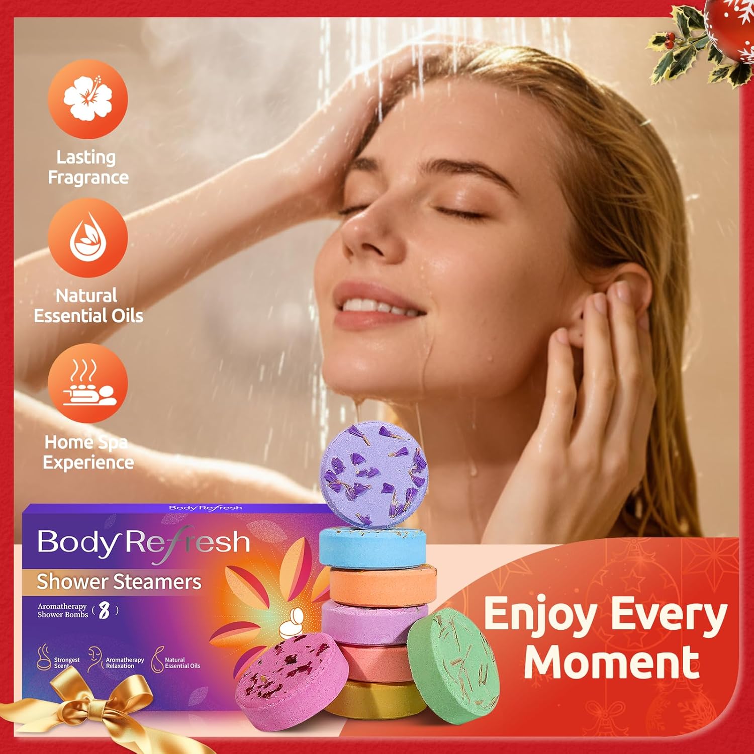 BodyRefresh 8 Pack Shower Steamers Aromatherapy, Shower Bombs Gift Set, Birthday Gifts for Women, Womens Christmas Gifts