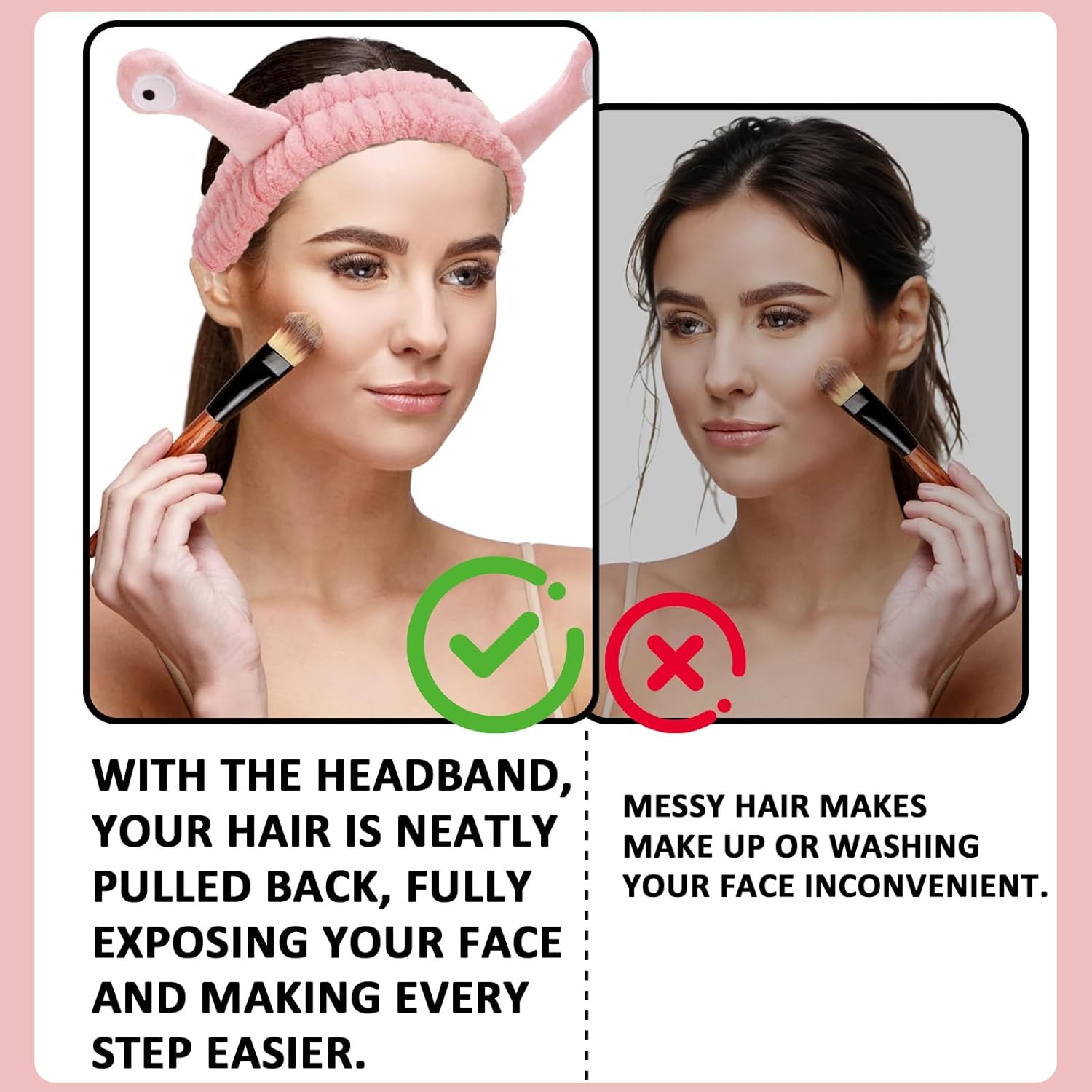 Snail Face Wash Headband, Cartoon Spa Headband, Cosmetic Accessories, Hair Bands for Women, Elastic Coral Fleece Headbands, Skincare Hair Band for Washing (Pink, One Size)