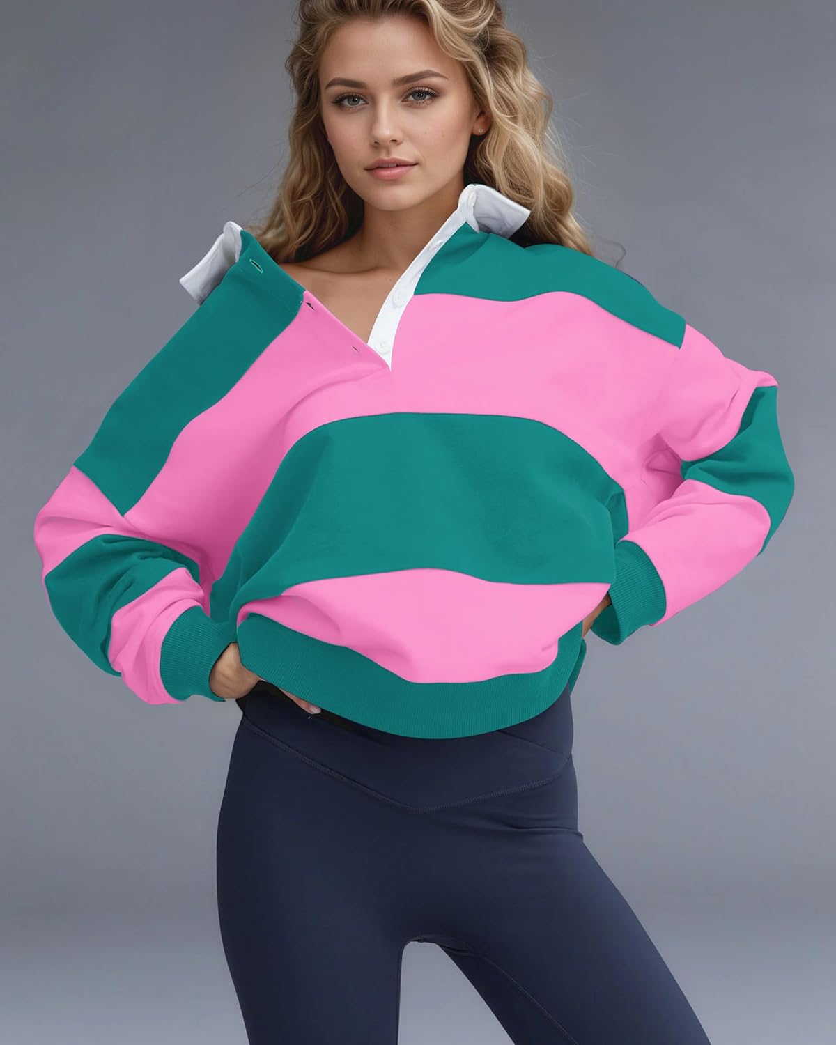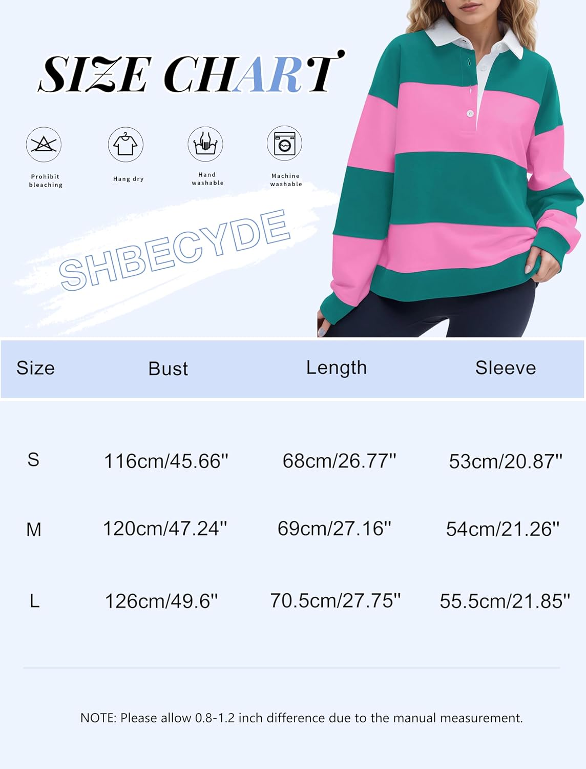 SHBECYDE Women Striped Color Block Polo Sweatshirt Lapel Collared Long Sleeve Oversized Rugby Shirt 2025 Trendy Fall Clothes