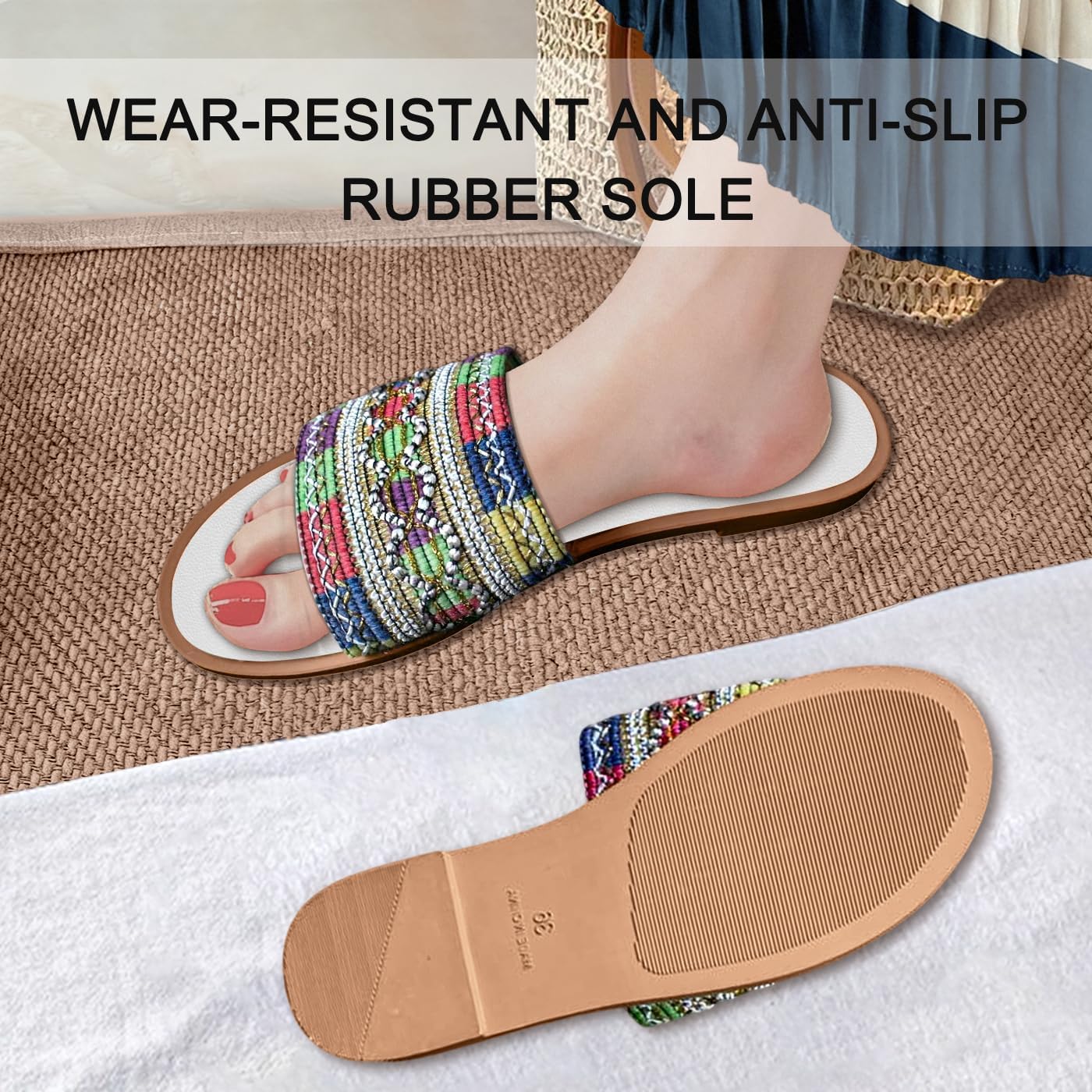 Women’s Boho-Chic Braided Slip-On Slippers – Arch Support, Breathable, Anti-Skid for Brunch, Travel & Errands