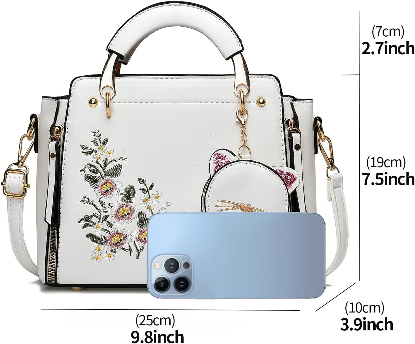 This purse is a fashionable and high-quality bag with a kitten pendant. It is a perfect gift for you, your friends, or your mother.