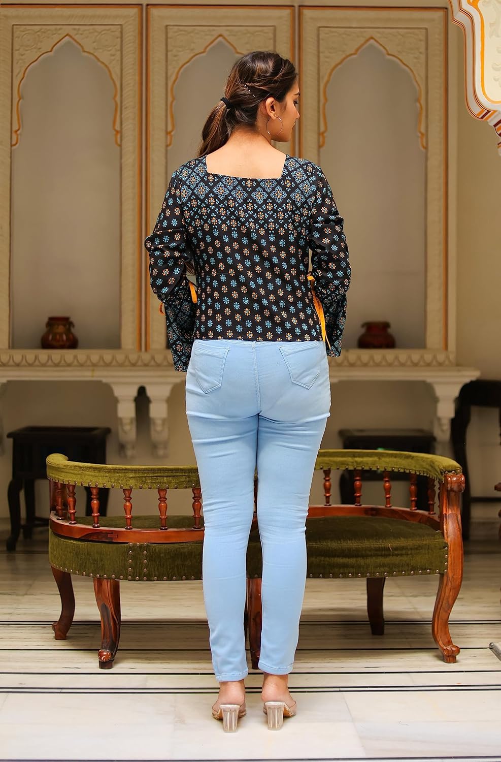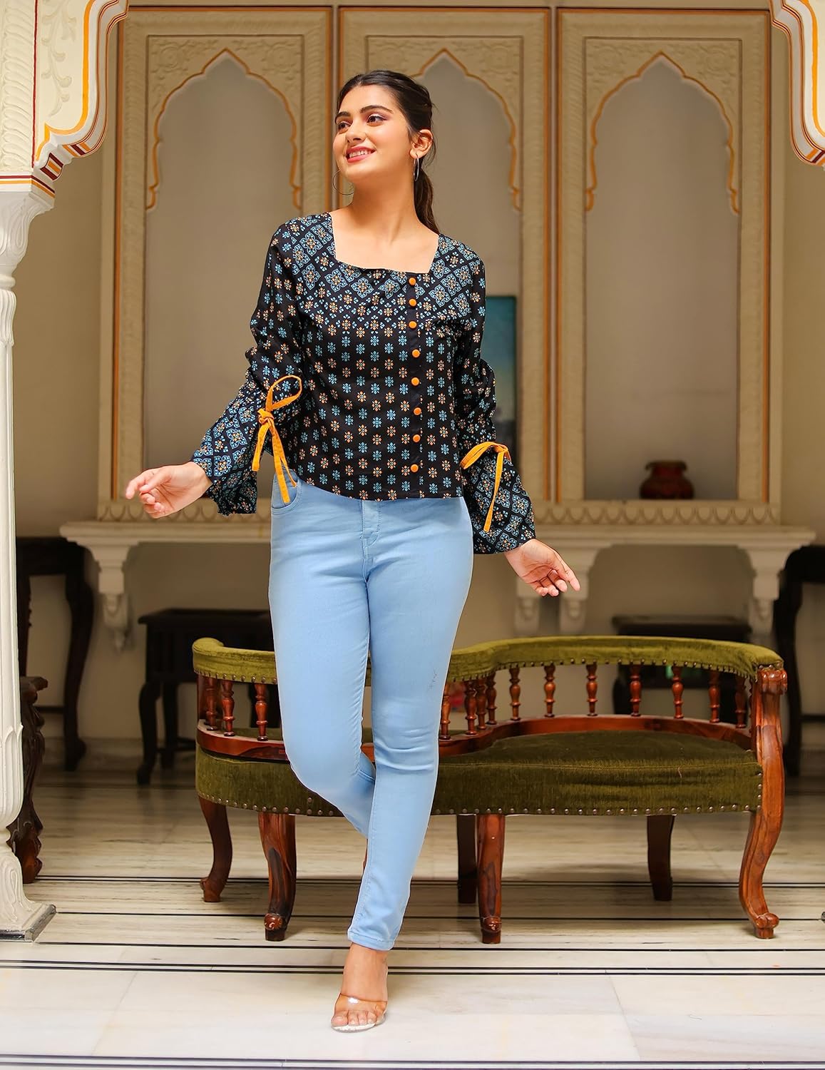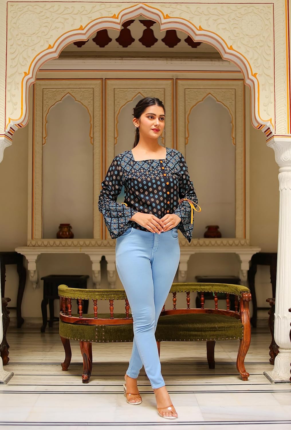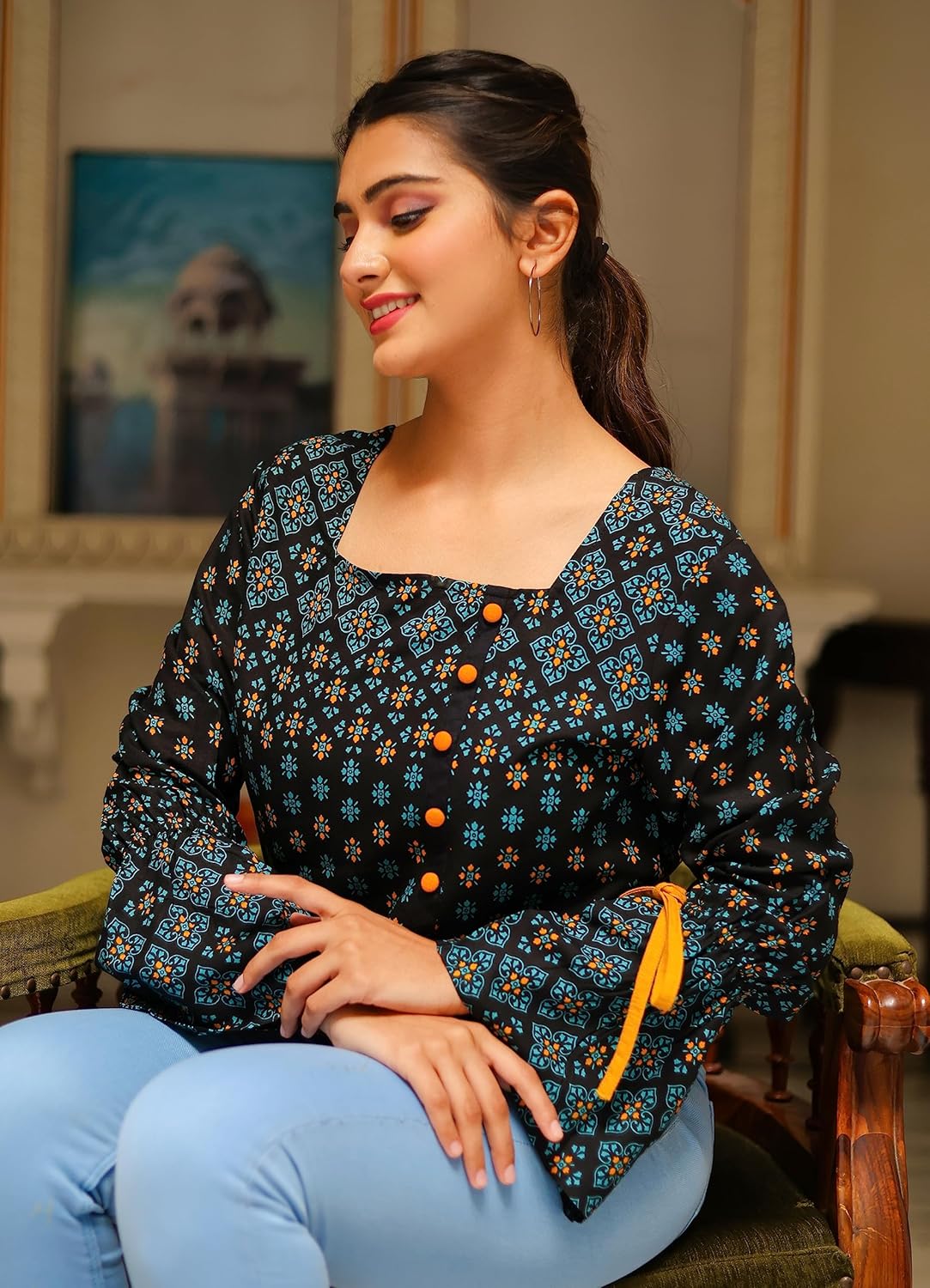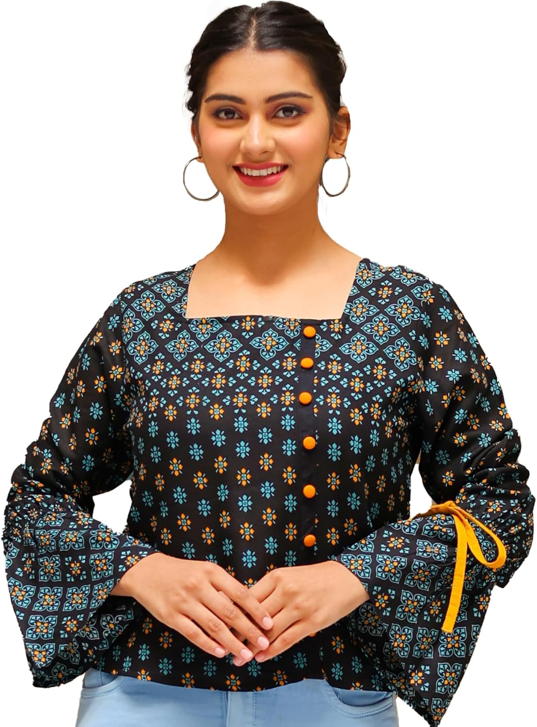 An amazing range of Women Western Wear in soft and solid colors that looks perfect for regular wear. With beautiful designs and patterns, these apparels are very stylish and comfortable too. Get rid of the ‘regular’ look this season wearing this Tops by YASH GALLERY. With a perfect blend of comfort and traditional style, This Floral Printed Square Neck top from YASH GALLERY exhibits with buttons. Tailored from Rayon, this top will keep you at ease all day long. Team this top with Jeans, Trousers, Pants or Palazzos.