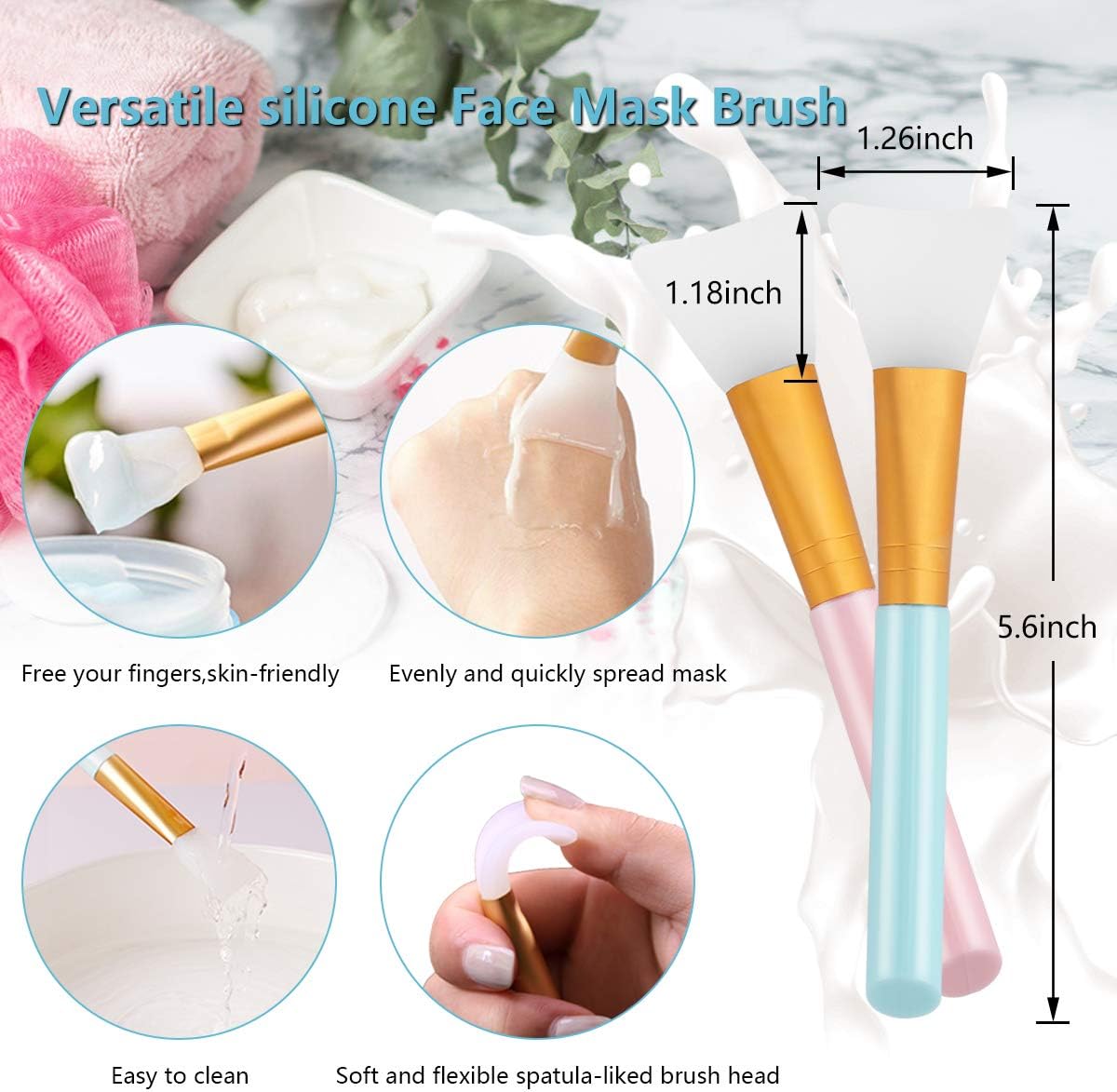 Face Mask Brush- these face mask applicator with soft and flexible spatula-liked brush head, comfortable to use. It can be applied with mud mask, exfoliation, essence and other skin care products. Easy to clean with water , durable for professional and home use.